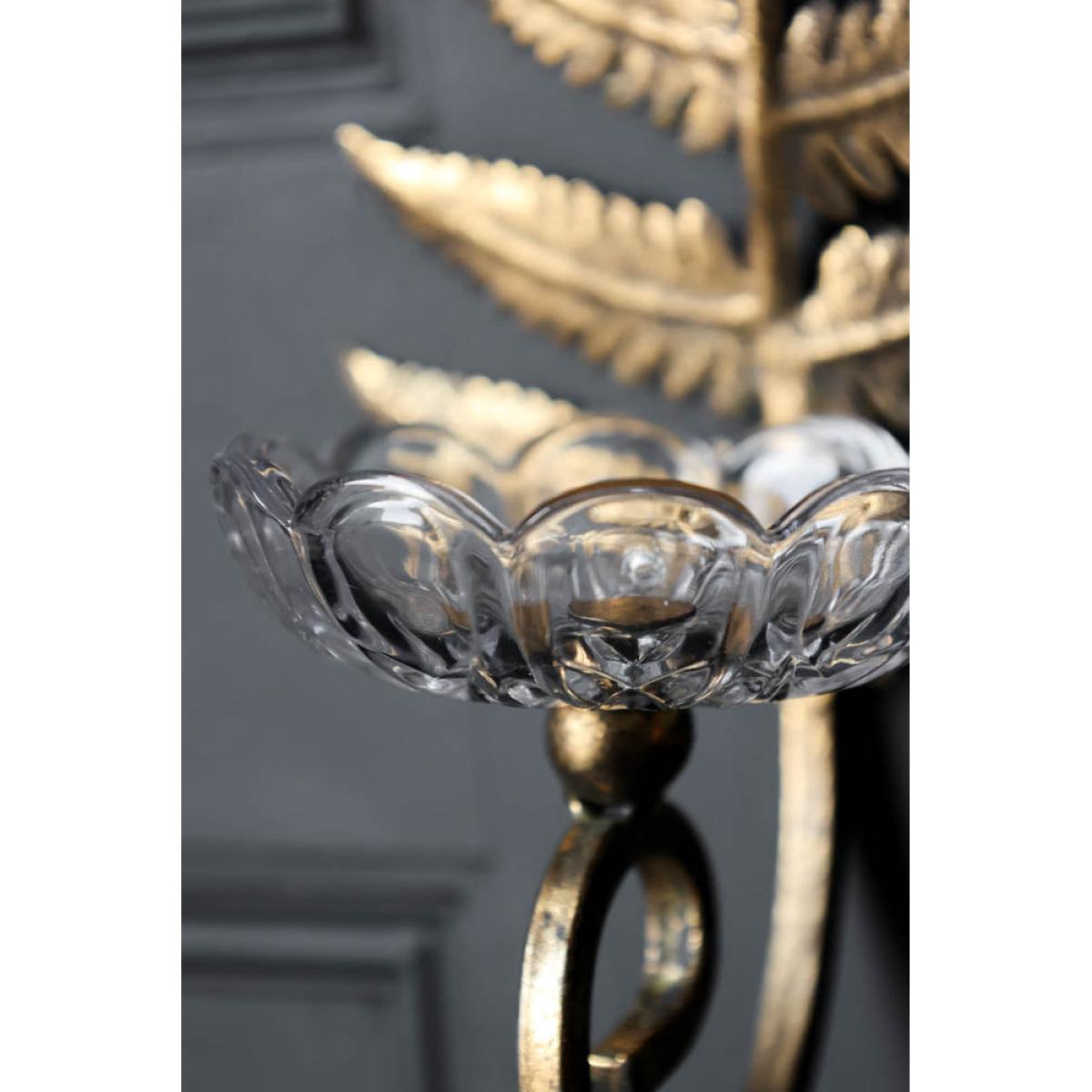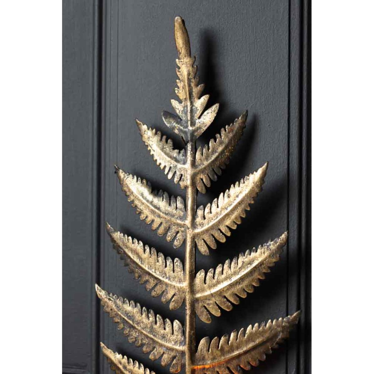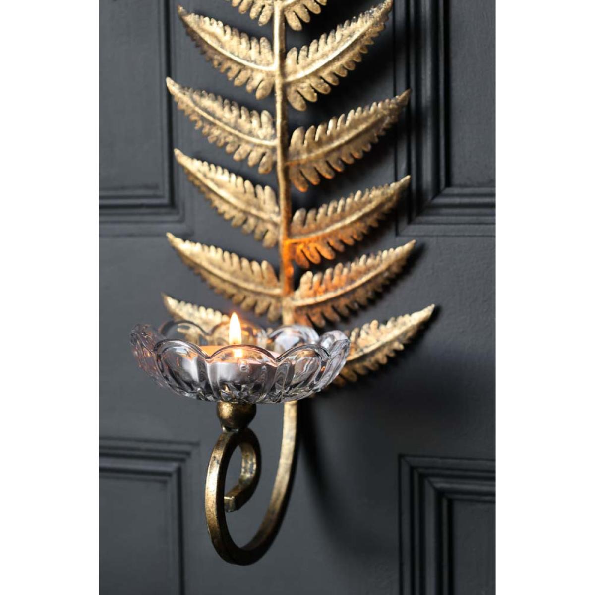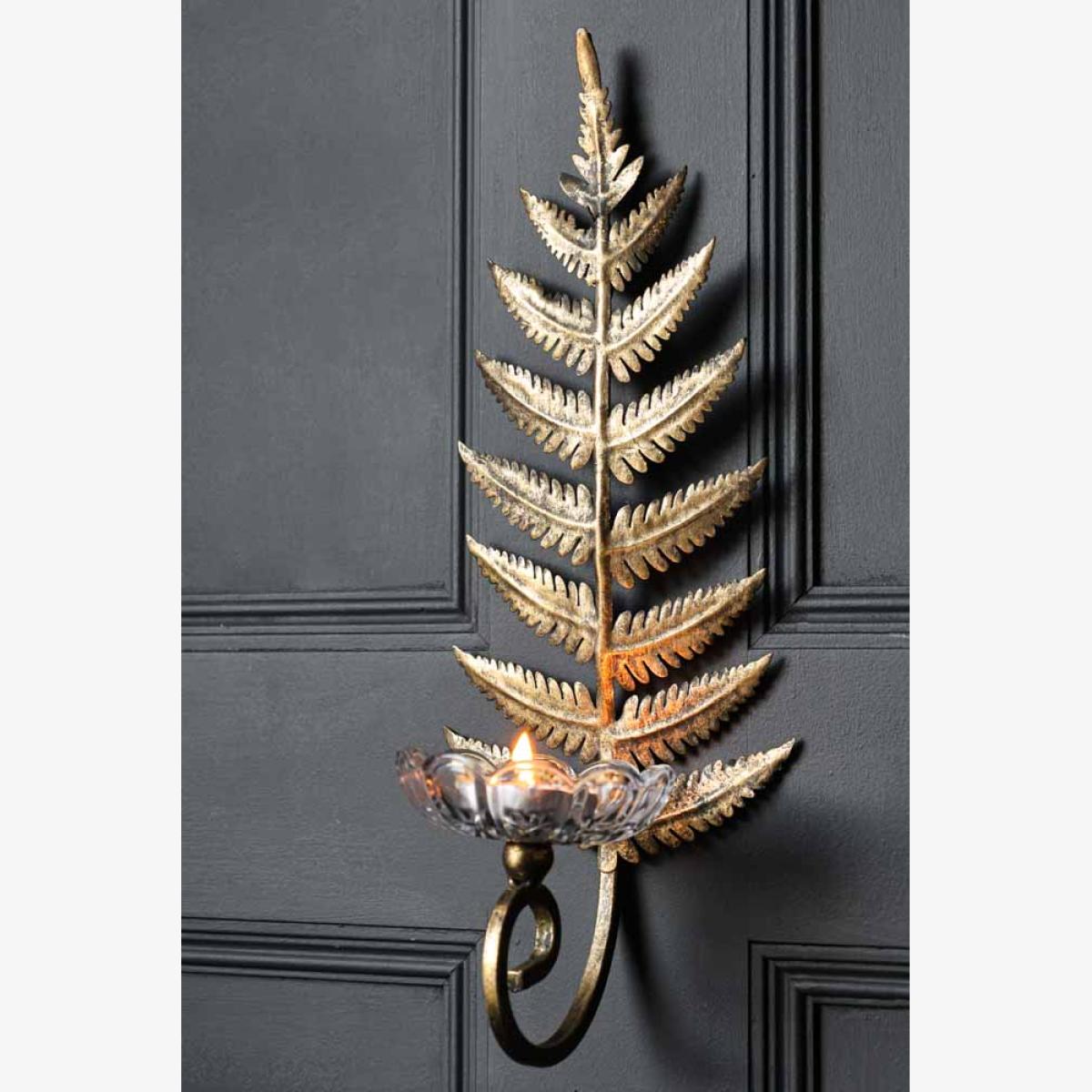 About the Fern Leaf Sconce With Glass Art and display combine to make this beautiful Wall Sconce! Inspired by nature the Fern Leaf Sconce is intricately detailed in a brass finish that mimics a fern leaf pattern with a glass tealight holder fixed at the bottom. Perfect for housing tea lights the Fern Leaf Sconce With Glass measures H36cm x W14cm x D12cm and is made from metal and glass. Never leave a lit candle unattended. Why We Think You’ll Love This Fern Leaf Sconce With Glass Well... the real question is... what’s not to love about the wall sconce candle holder? A sculptured piece that will add warming candlelight glow to your hallways, living rooms and bedrooms the Leaf Wall Sconce is a real crowd-pleaser. What’s more, we also think that the wall sconce tealight holder would make a really lovely housewarming gift for movers or a Christmas gift for that special someone.