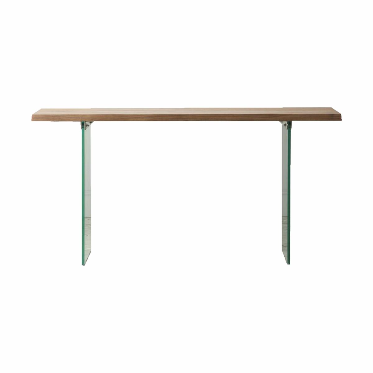 A modern twist on a timeless look. This range is a beautiful addition to your living space. Made with a solid Acacia wood top featuring a beautiful and unique waney edge and finished with tempered glass legs.