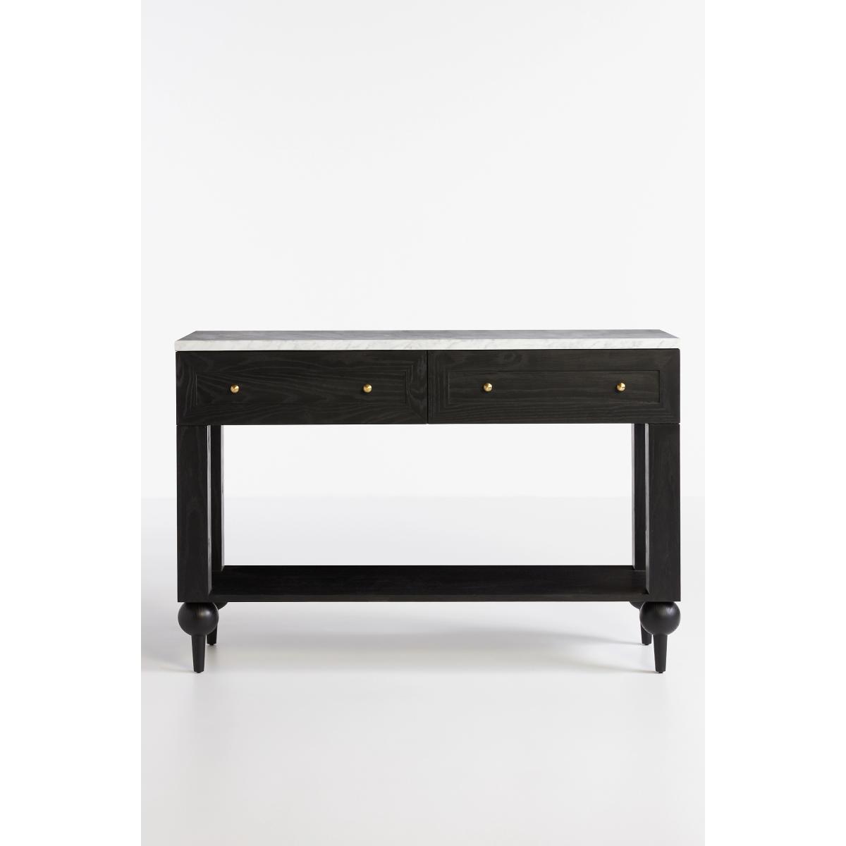 Part display piece, part clutter solution, and entirely charming, our bestselling Fern Collection makes EVERY room more beautiful. With its signature arched silhouette, buttoned-up hardware, and so-cute ballooned feet, this stylish storage epitomises a classic, only-at-Anthro effect that keeps you coming back for more sizes, more colours, and more compliments! Fern Marble-Top Ash Wood Console Table by Anthropologie in Black