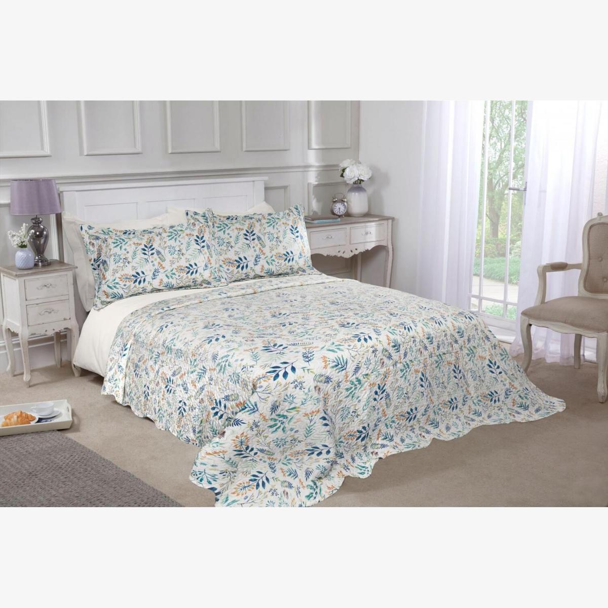 Fern Quilted Bedspread Throw Over Set - Green / Single