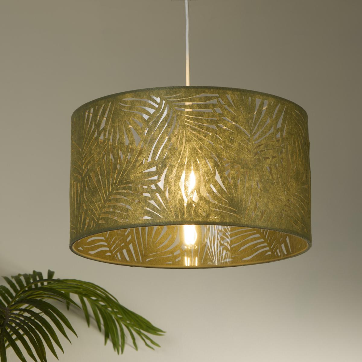 Embrace the beauty of nature with the Ferne felt leaf shade. Featuring a stunning green felt fretwork design, this shade casts a soft, organic glow that complements any space. The easy-fit design allows for quick and effortless installation, while The fretwork design creates a captivating interplay of light and shadow, adding depth and dimension to your room.