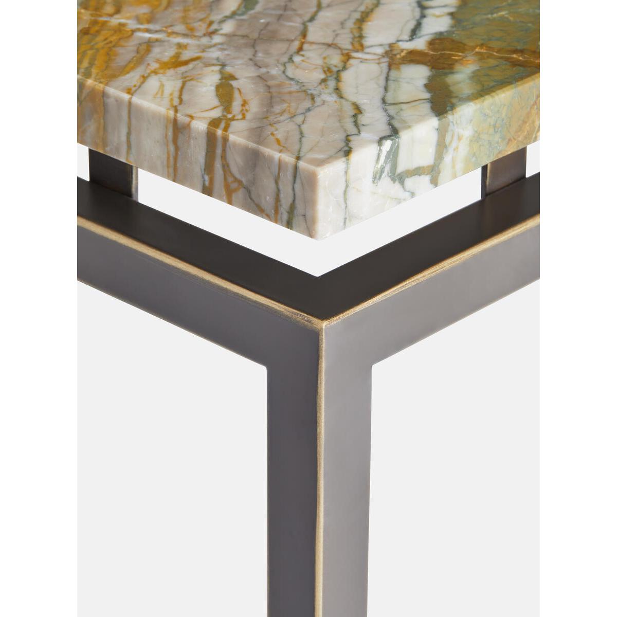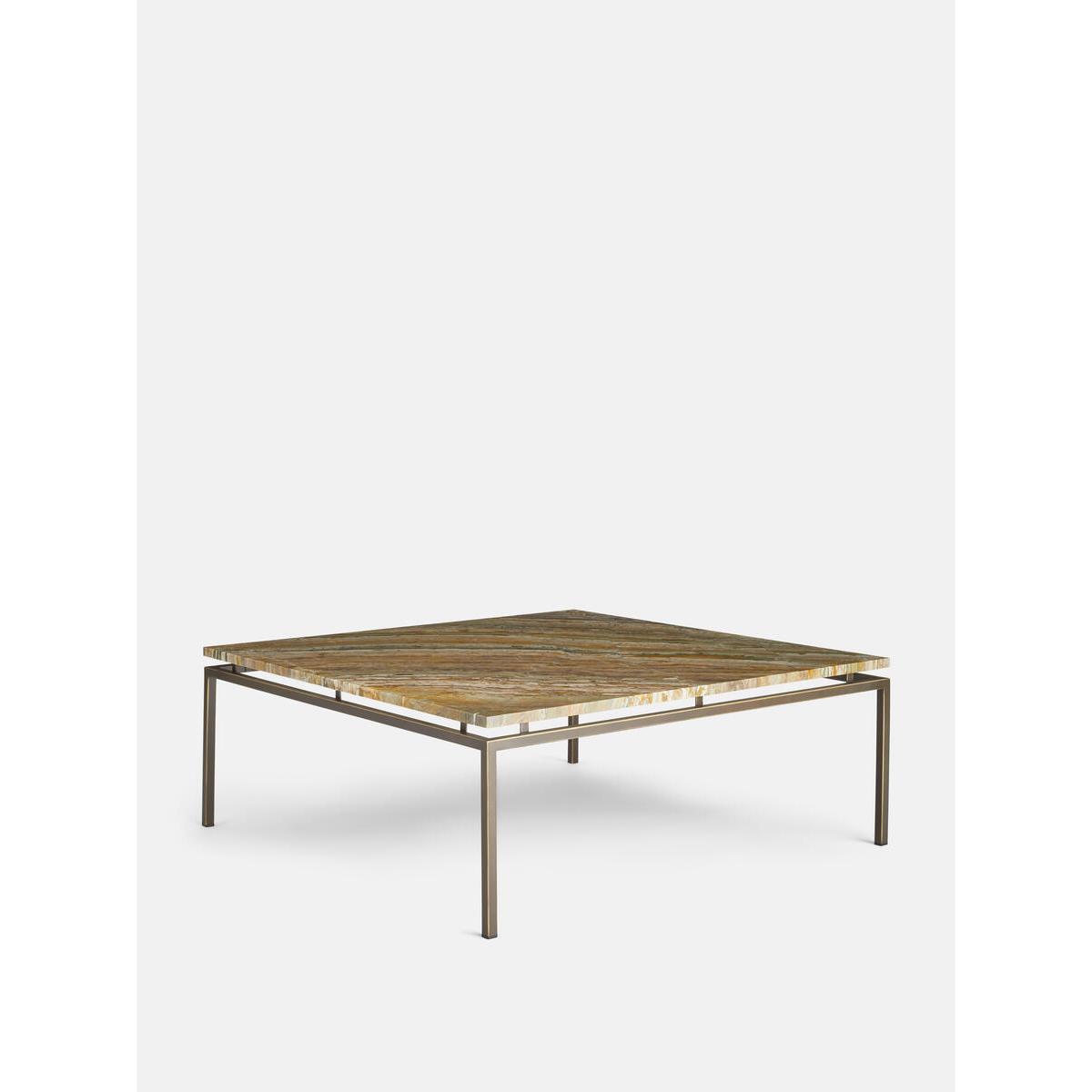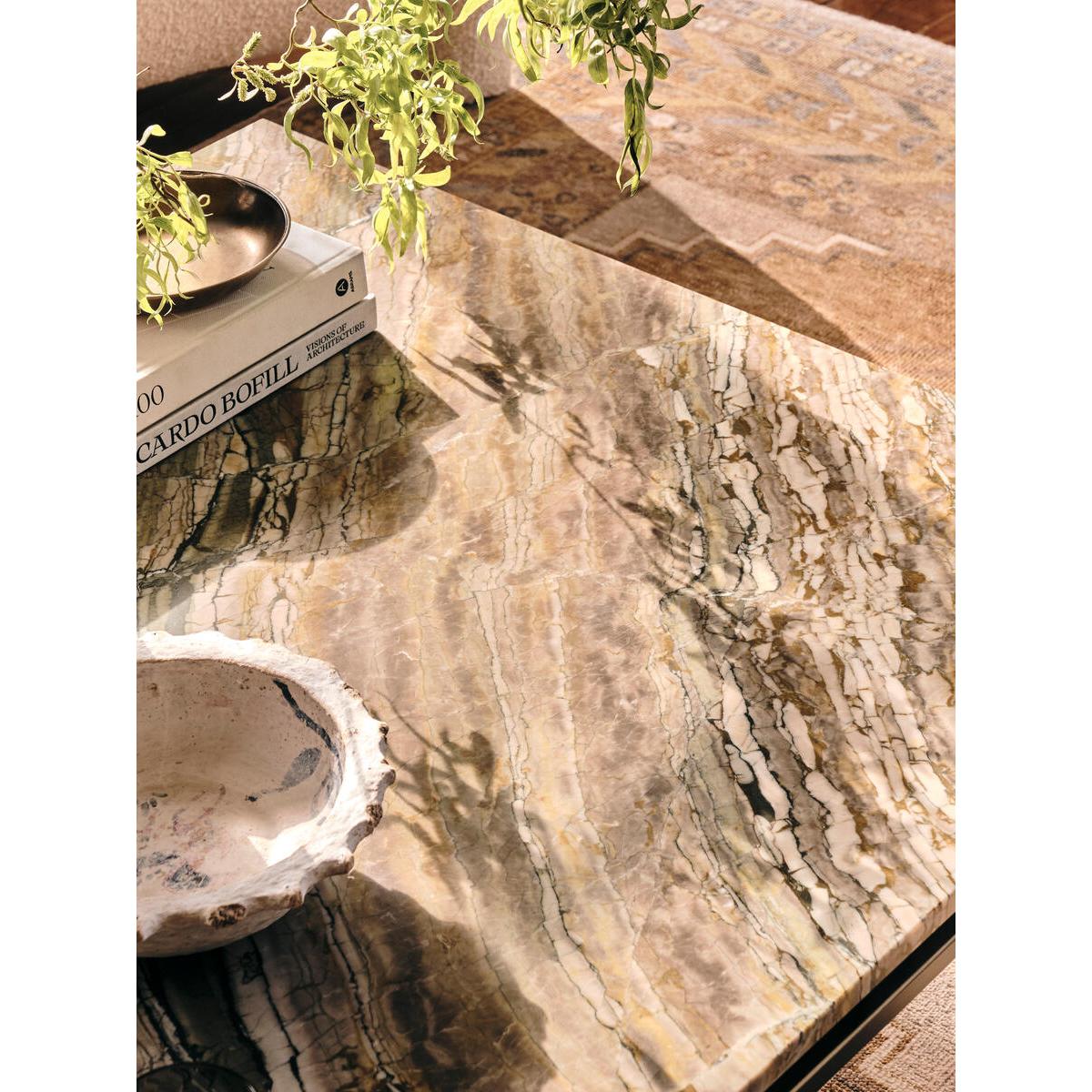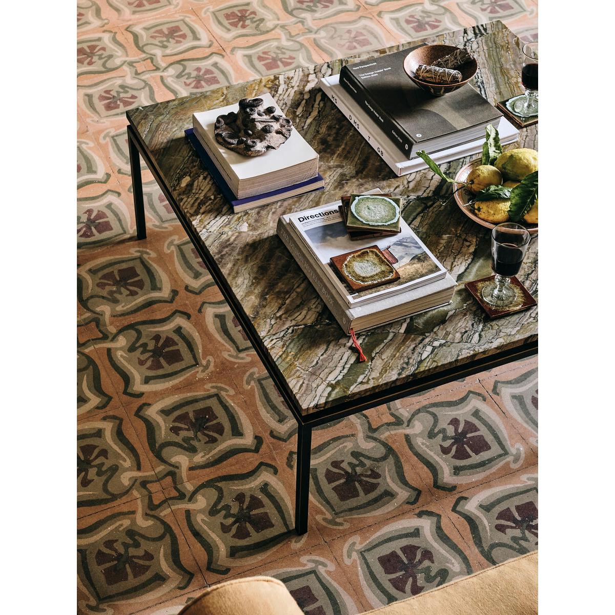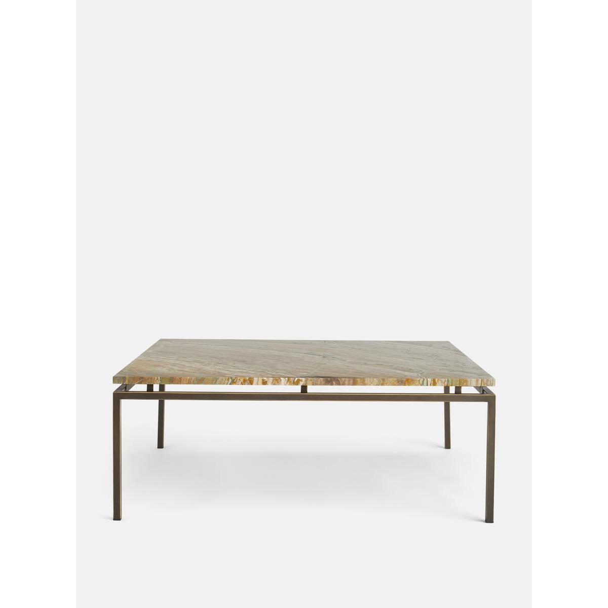 We've used Pocahontas marble sourced from Greece to create our Fernsby coffee table, characterised by oxidised iron tones andwarming shades of green, orange, and yellow. A honed finishaccentuates the unique clasts, which have been compressed by natureover millions of years. Use this piece as a starting point to buildyour living area - its modern structured tones and blackened brassframe recall the textures found at 180 House. Honed marble coffee table. Pocahontas marble sourced from Greece. Oxidised iron, green, orange and yellow tones. Each table is unique due to variations in the marble. Square top. Blackened brass frame. Also available as a side table. Inspired by 180 House.