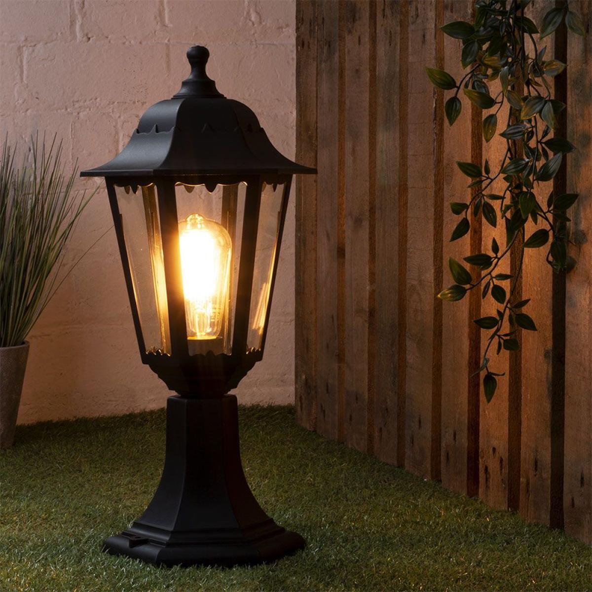 Ferris Outdoor Polycarbonate Short Post Lantern, Black