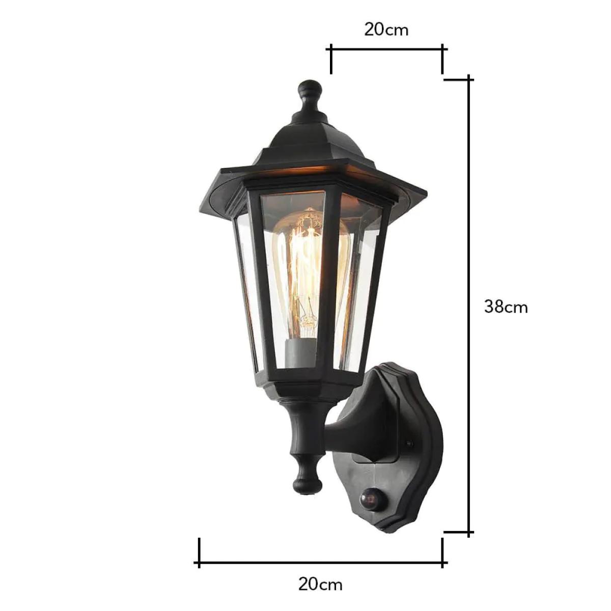Our Ferris Outdoor Polycarbonate Wall Lantern with PIR Sensor is the perfect addition for lighting your home’s exteriors, with a PIR sensor that activates the light whenever motion is detected – great for utilising your space in the dark or pulling attention to any unexpected activity. This wall fitting has a black finish and a traditional design bringing a cosy, homely environment throughout your arrangements. Able to withstand most weather conditions, the fitting comes with a handy IP44 rating, as well as a polycarbonate material ideal for resisting salt corrosion.