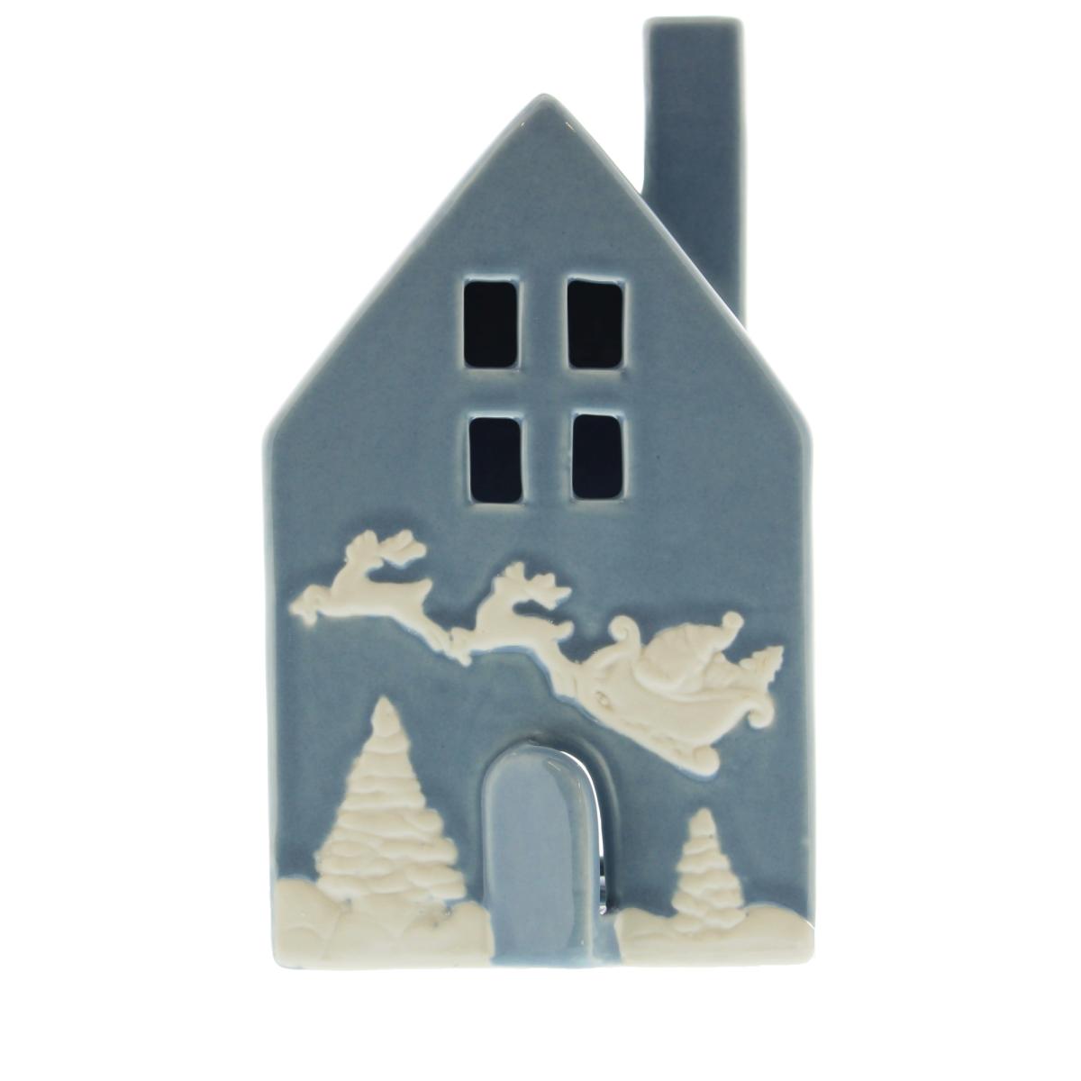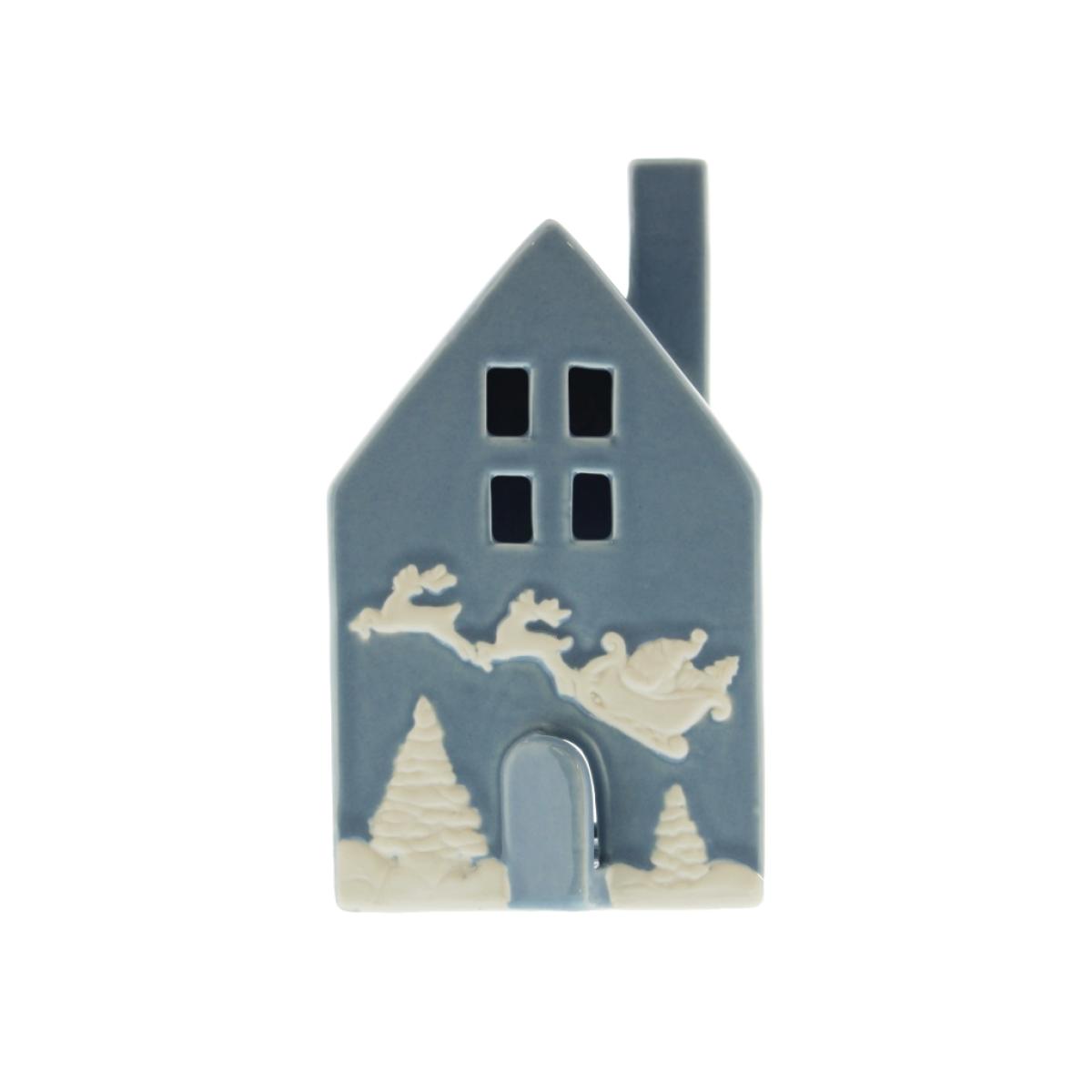 Festive Ceramic House Tealight Holder - 17cm In Blue