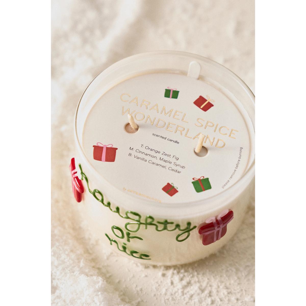**Caramel Spice Wonderland (Gourmand):** Zesty orange and rich fig mingle with warm maple syrup, brown sugar, and cinnamon, all wrapped in creamy vanilla and caramel. This inviting scent evokes cosy moments by the fire, softened by hints of musk and cedarwood. *For the best burn experience, keep the following in mind:* * The first time you light your candle, allow it to burn until the wax pool melts all the way to the edge; for a larger candle, this may take several hours. Wax has "memory," so if it is extinguished with a partial pool, that will prevent a full, even pool from forming in the future. * Trim your wick each time you light the candle, removing any "bloom" from the previous burn. We recommend lighting a wick that is 1/4-1/2" in length. * Ensure that your candle is placed on a heat-safe surface. * Do not allow wick trimmings, dust, or other materials to accumulate in the wax pool. * To ensure safety and longevity, be sure to check the bottom of your candle for additional instructions, including details on when to discontinue use. * 28.5-hour burn time * Palm wax blend; Fil-Tec candle wick * Glass vessel * Imported
