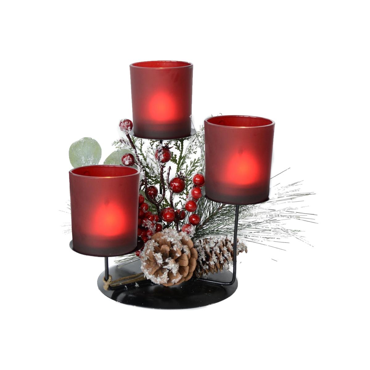 The Festive Red Berry Triple Candle Set is a great item to bring a festive look to your home. Featuring traditional Christmas tones such as red and green, this traditionally inspired ornament is the perfect size for your tealight or votives to bring a warm and cosy atmosphere to your home. Finished with a pinecone and glitter detailing, this would make a beautiful centrepiece for your dinner or accent table.