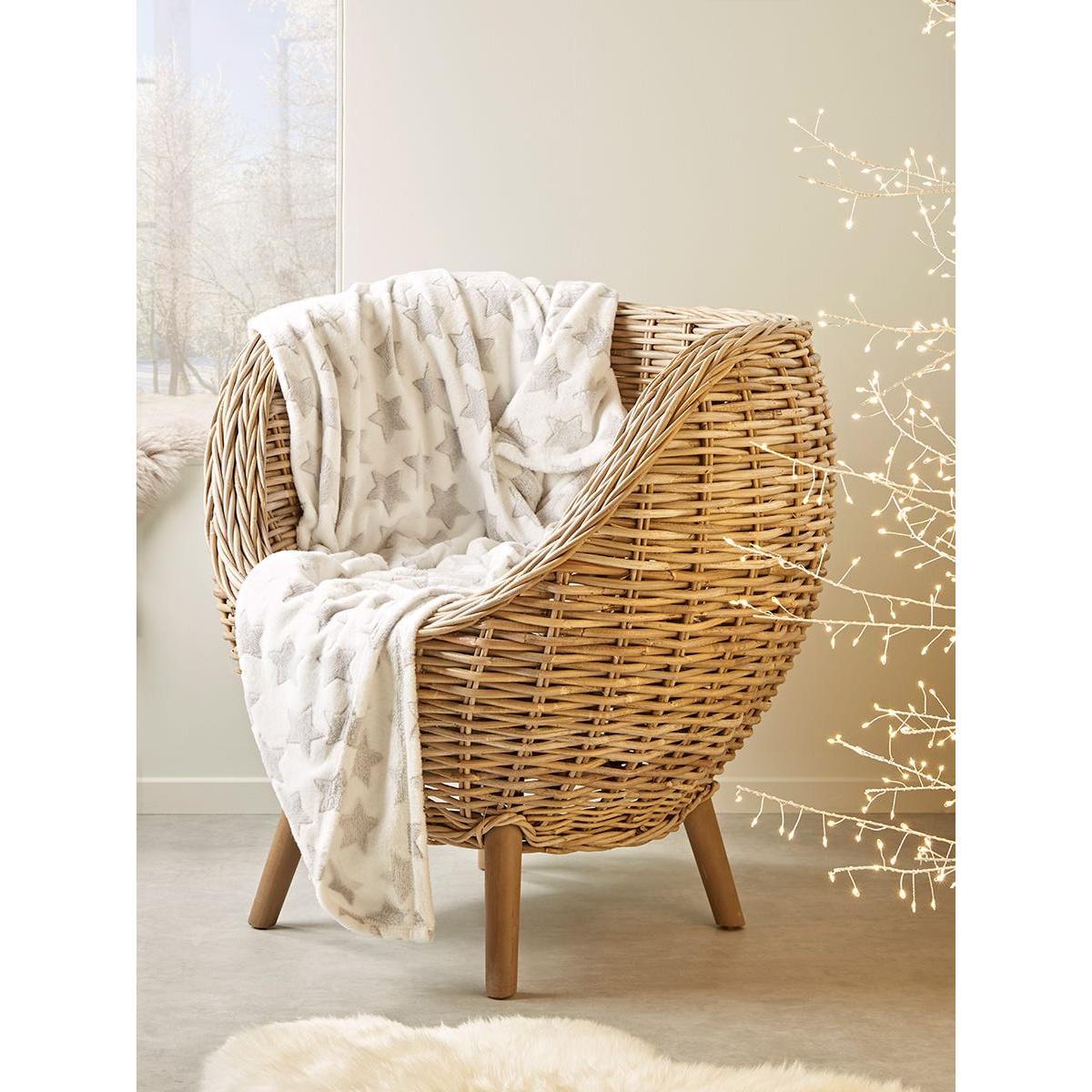 Adorably soft, our fleecy festive throw is a great way to add a seasonal accent to your home and ideal for snuggling under when the winter chill hits. This one features a gentle contrast of silver stars on a snowy white background. Just add hot chocolate and your favourite Christmas film. Discover more of our Starry Scandi Christmas trend.