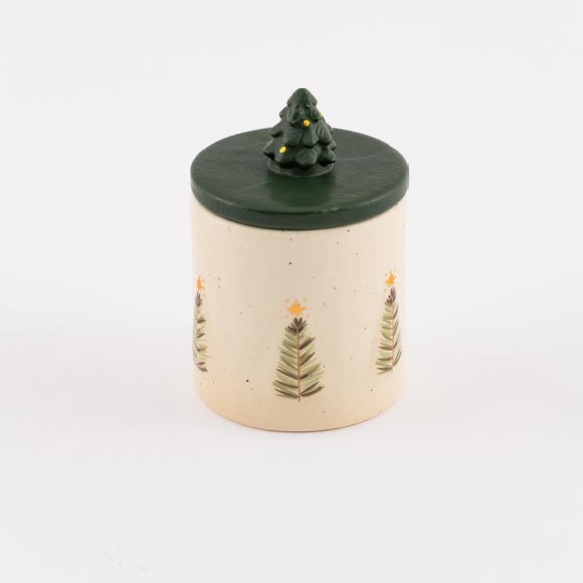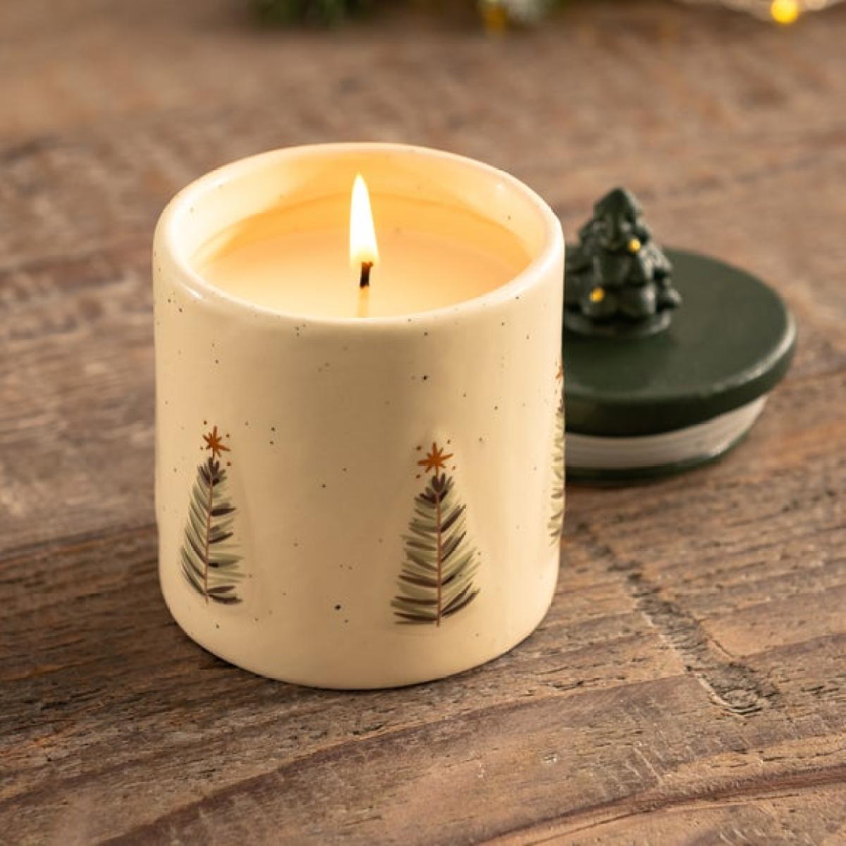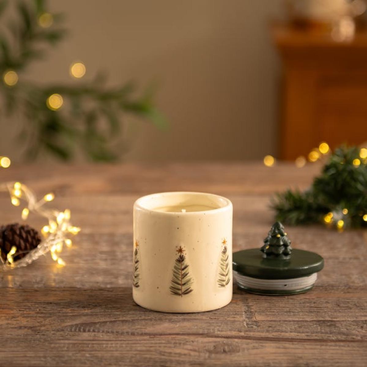 * Ceramic candle * Festive tree design * Fresh woody scent * Decorative lid * Up to 35 hour burn time Celebrate the season with the cosy scent of the Home for the Holidays Ceramic Candle. A nostalgic blend of zesty clementine and holly berries is layered with warming cinnamon, balsam pine and rich amber to capture the essence of Christmas. Housed in a ceramic vessel adorned with a festive tree design and tree detail on the lid, it’s a charming addition to any room. With a burn time of up to 35 hours, it's ideal for creating a warm, inviting atmosphere throughout the holidays. A simple way to bring festive fragrance and style into your home.