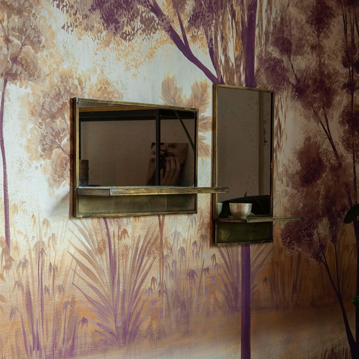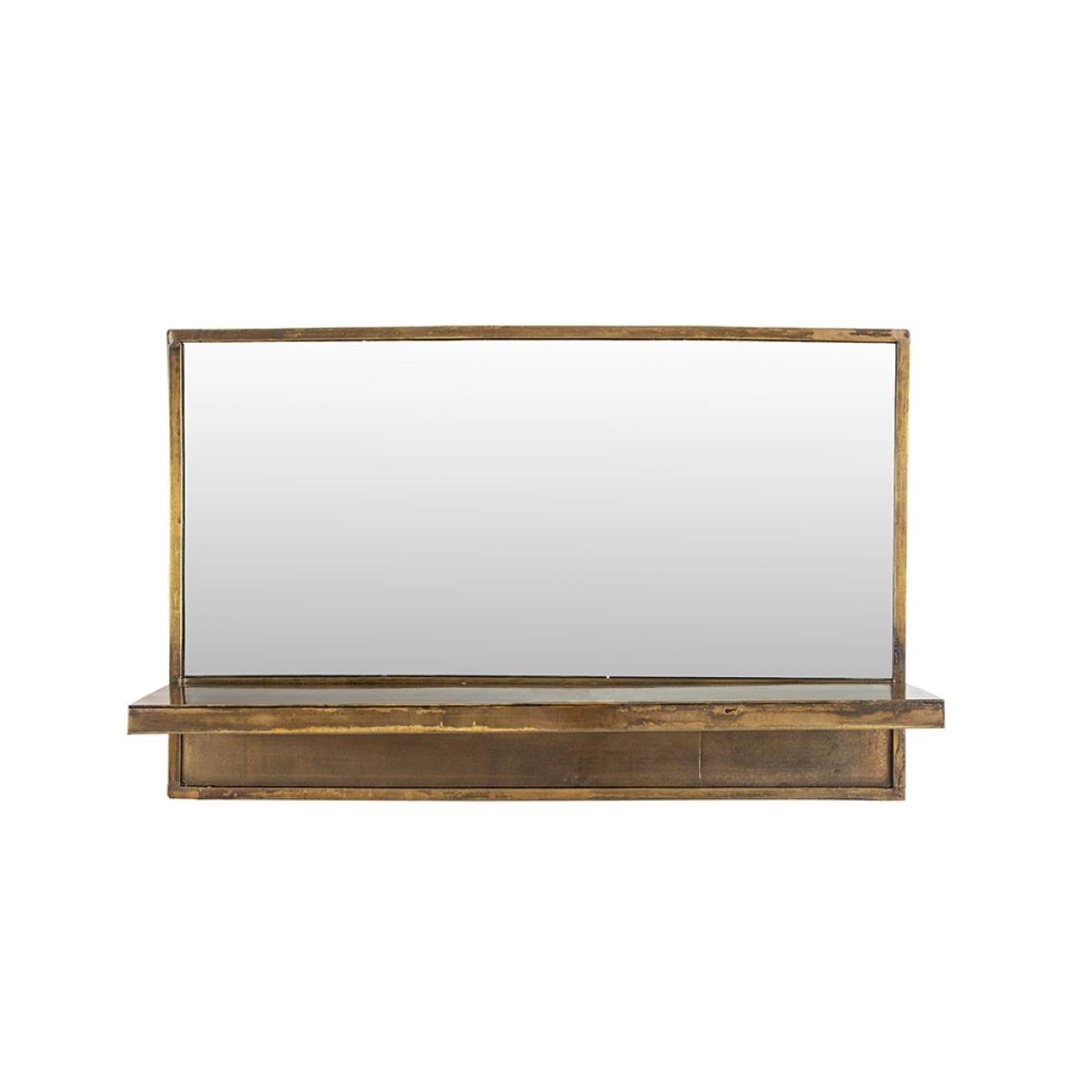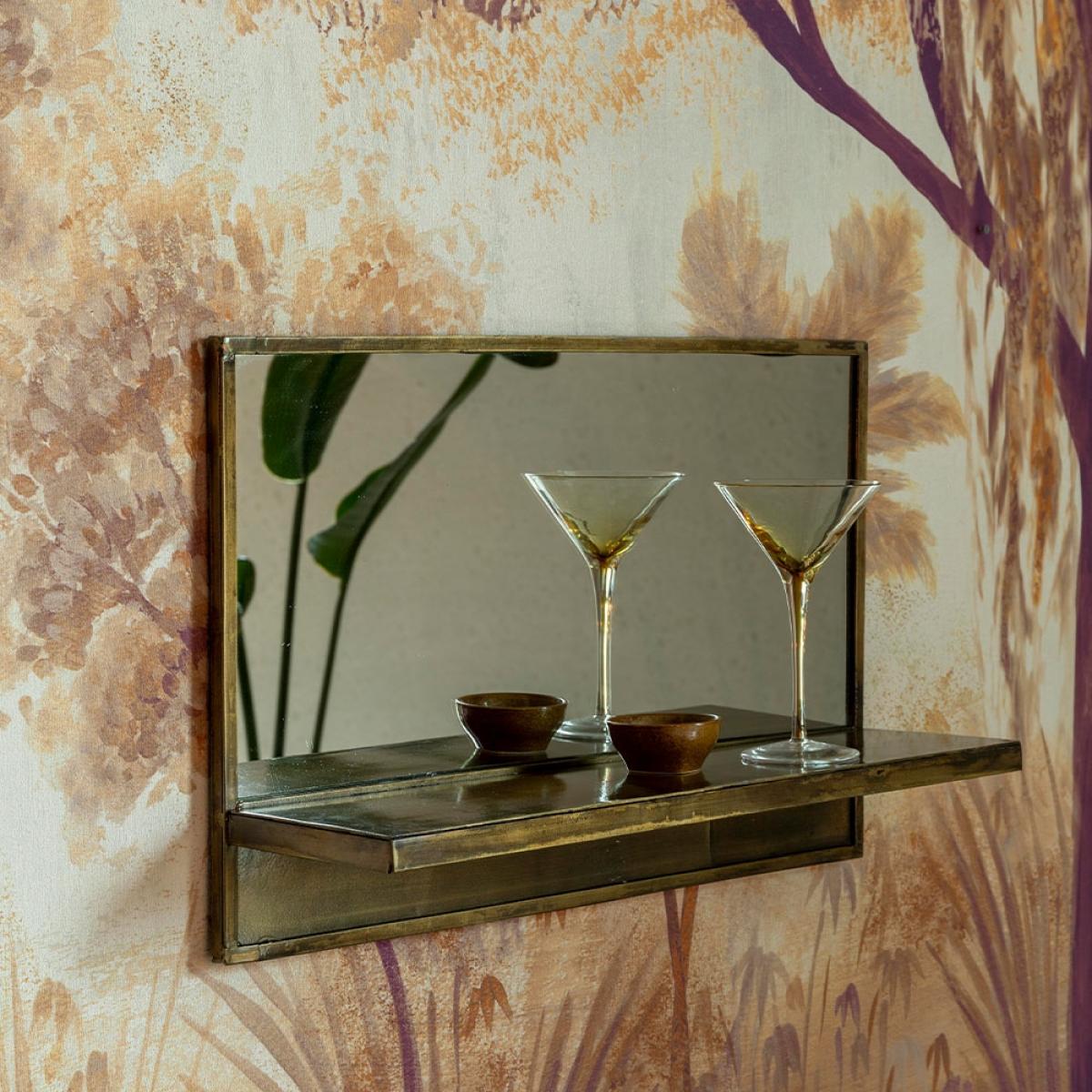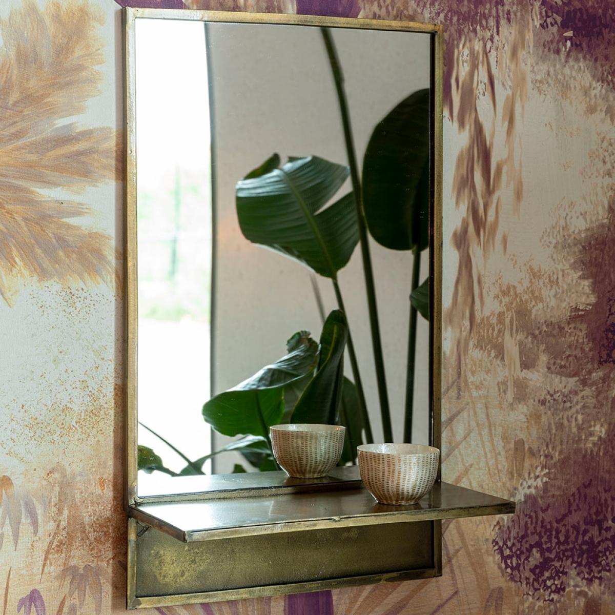 The decorative Feyza Mirror with Shelf gives the illusion rooms are bigger than they are! Available in a choice of styles, the rectangular wall mounted mirror has been designed with a protruding shelf - complete the look with candles, flowers or hanging plants and create a focal point in your chosen space. The burnished brass plated iron frame brings added glamour to your interiors. Also available in a circular design, bring life back to your walls with the Feyza Mirror collection.