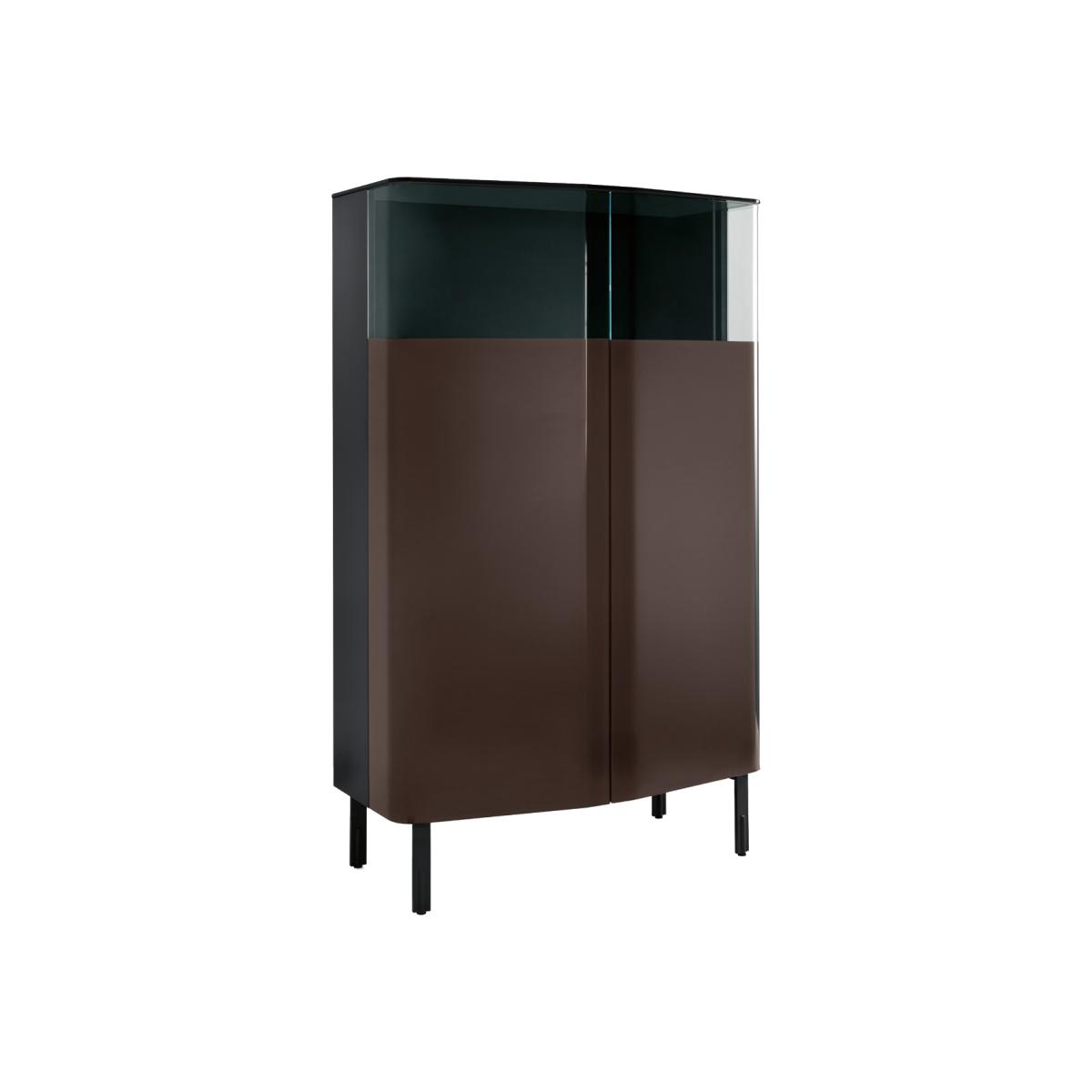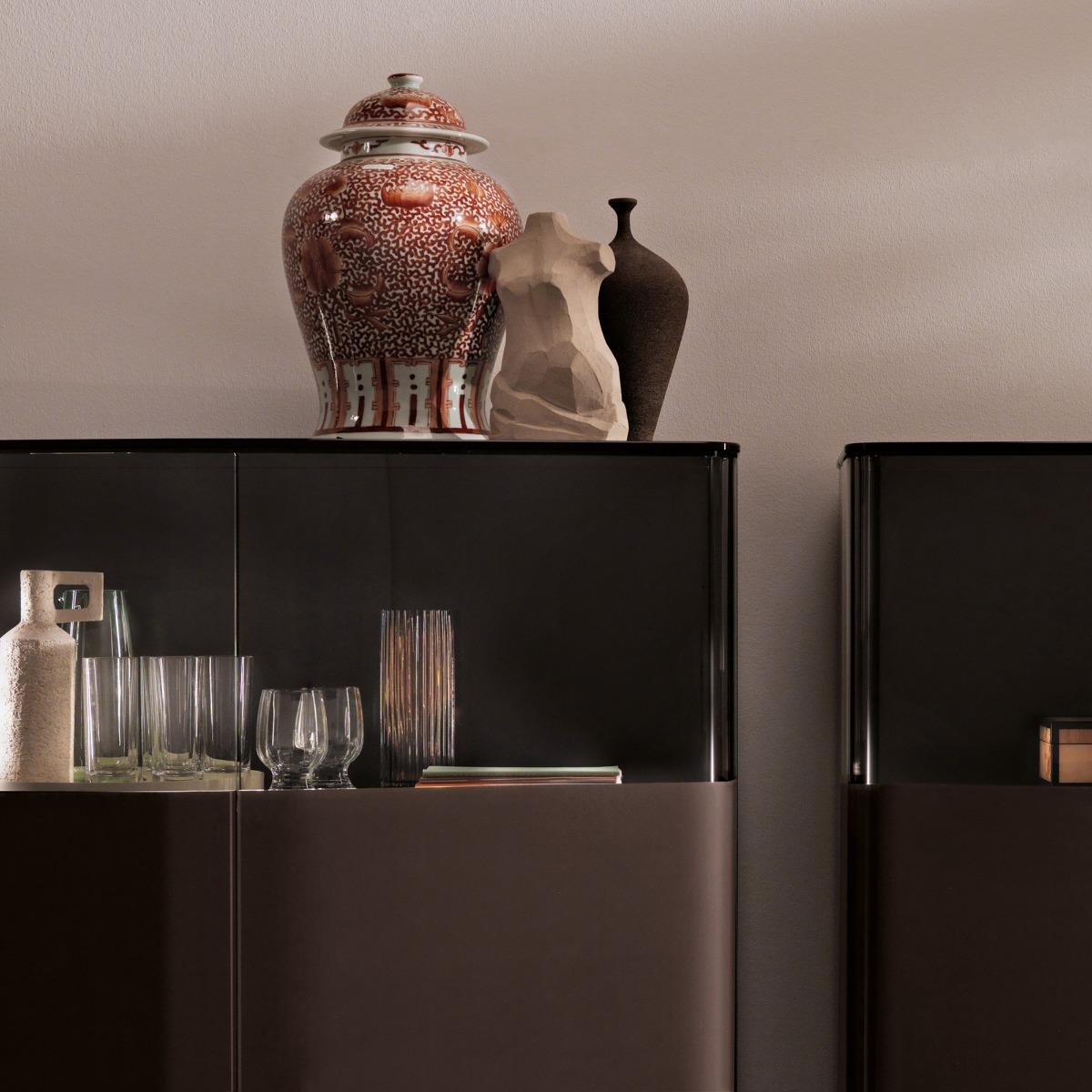 The dramatic composition of the Lady Pli Sideboard is unmatched in style, silhouette and charm. Lava grey lacquered wood supports the glossy glass panels that make up the body, with a deep brown veneer for a sophisticated appeal that will easily match a range of schemes. Completed with a push-pull opening system for effortless use, Lady Pli is the perfect place to both store and display your most-loved items with glamour. For more information and to discuss additional options, please contact our specialist brand advisors.
