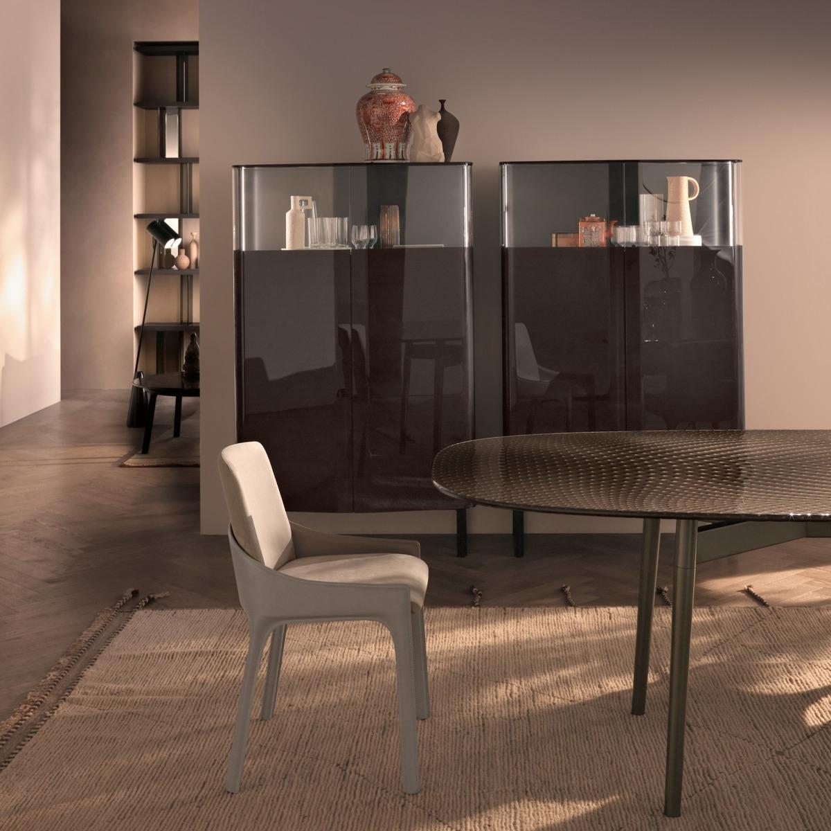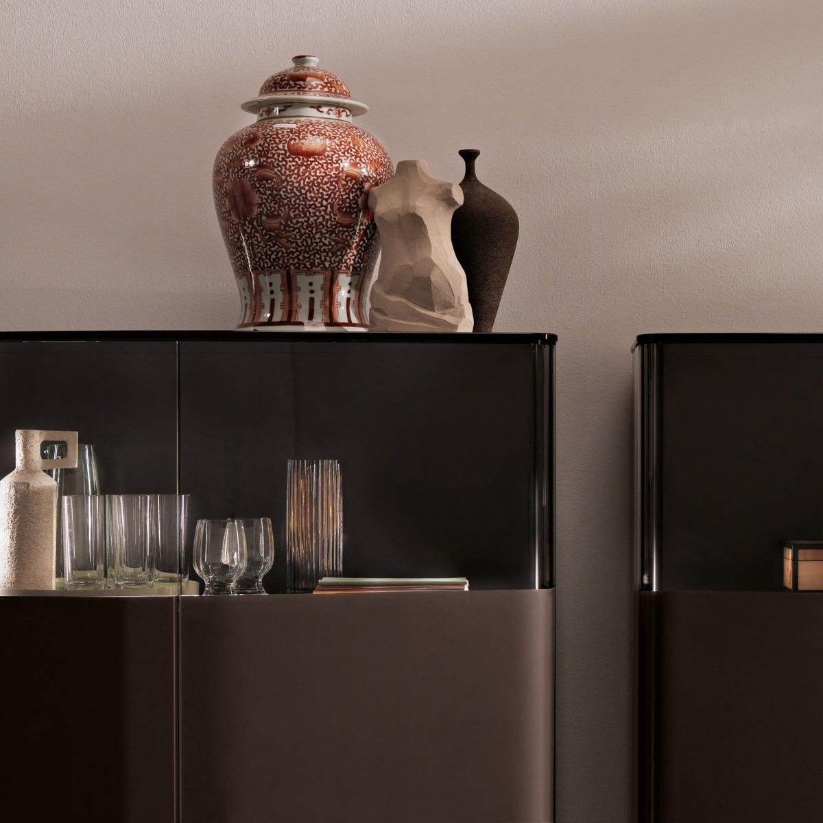 Design. The dramatic composition of the Lady Plié Sideboard is unmatched in style, silhouette and charm. Lava grey lacquered wood supports the glossy glass panels that make up the body, with a deep brown veneer for a sophisticated appeal that will easily match a range of schemes. Completed with a push-pull opening system for effortless use, Lady Plié is the perfect place to both store and display your most-loved items with glamour. For more information and to discuss additional options complete our. Enquiry form. Or. Contact our specialist brand advisors.