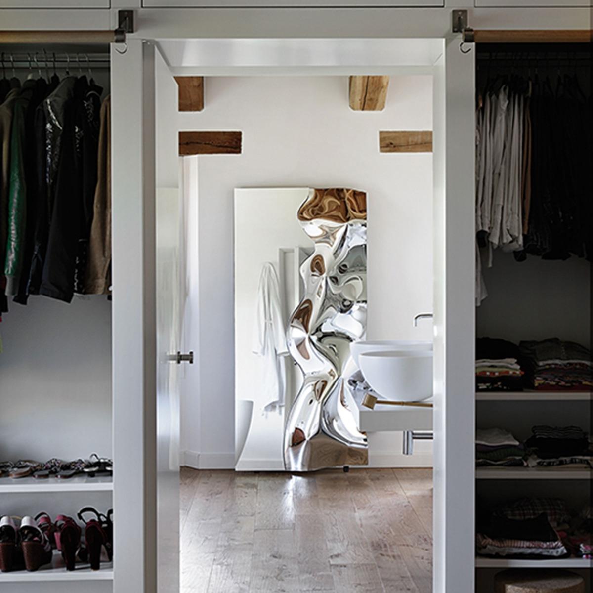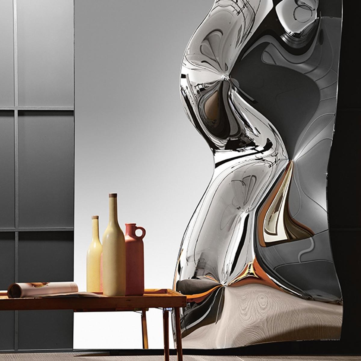 I love this mirrored piece for its striking, contemporary design and high-gloss finish that instantly adds a modern edge to any space. It works particularly well in minimalist or industrial interiors, where its sleek silhouette can serve as a statement feature. For styling tips, try pairing it above a console table or in an entryway to create a sense of depth and light, or hang it in a bathroom to elevate a functional space with a touch of glamour. Since the shape is quite sculptural, keep surrounding decor simple to allow the mirror to be the focal point, and consider placing it where it can reflect natural light for maximum impact.