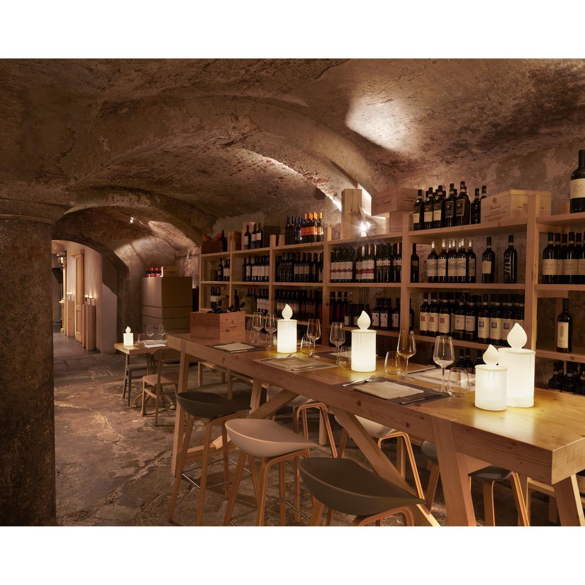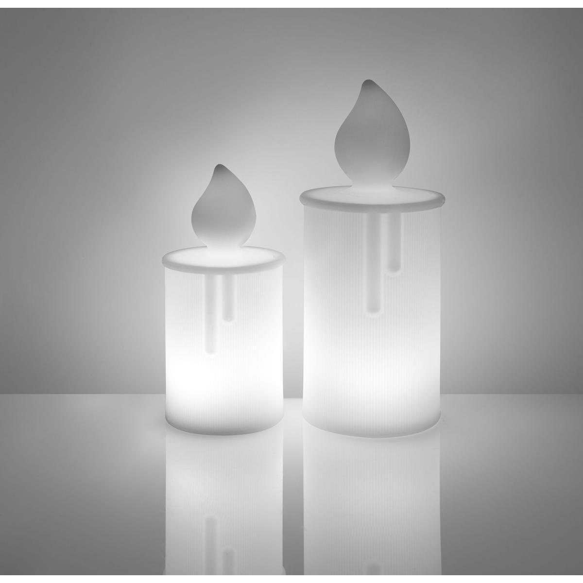 A small lamp that’s romantic and ultra-contemporary. Placed outside to light up your garden, on a table near the tree or on the fireplace, Fiamma plunges you instantly into a magical world, ideal for the festive holidays! With its giant candle shape, it diffuses a soft, warm light, accentuated by its striped texture covering the whole surface. For a stylish and unforgettable festive atmosphere, combine the Fiammetta and Fiamma candles, which come in different sizes and versions for indoors and outdoors. A meeting point between artificial and natural, these pretty lamps also light up your decoration. This wireless version for outdoors is equipped with an LED battery (with remote control and USB cable included).