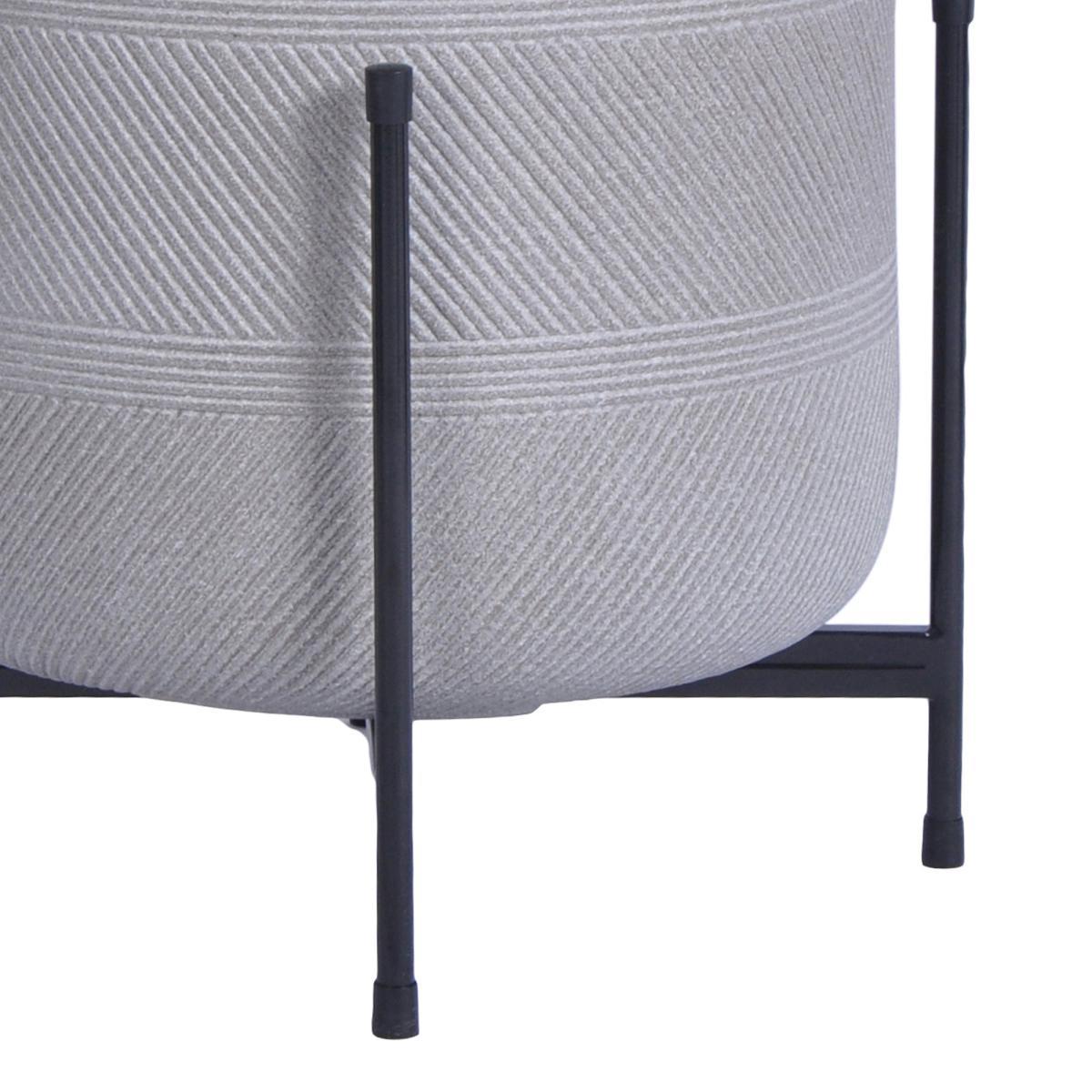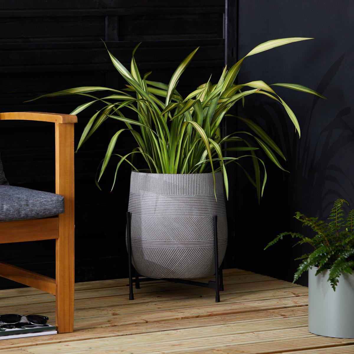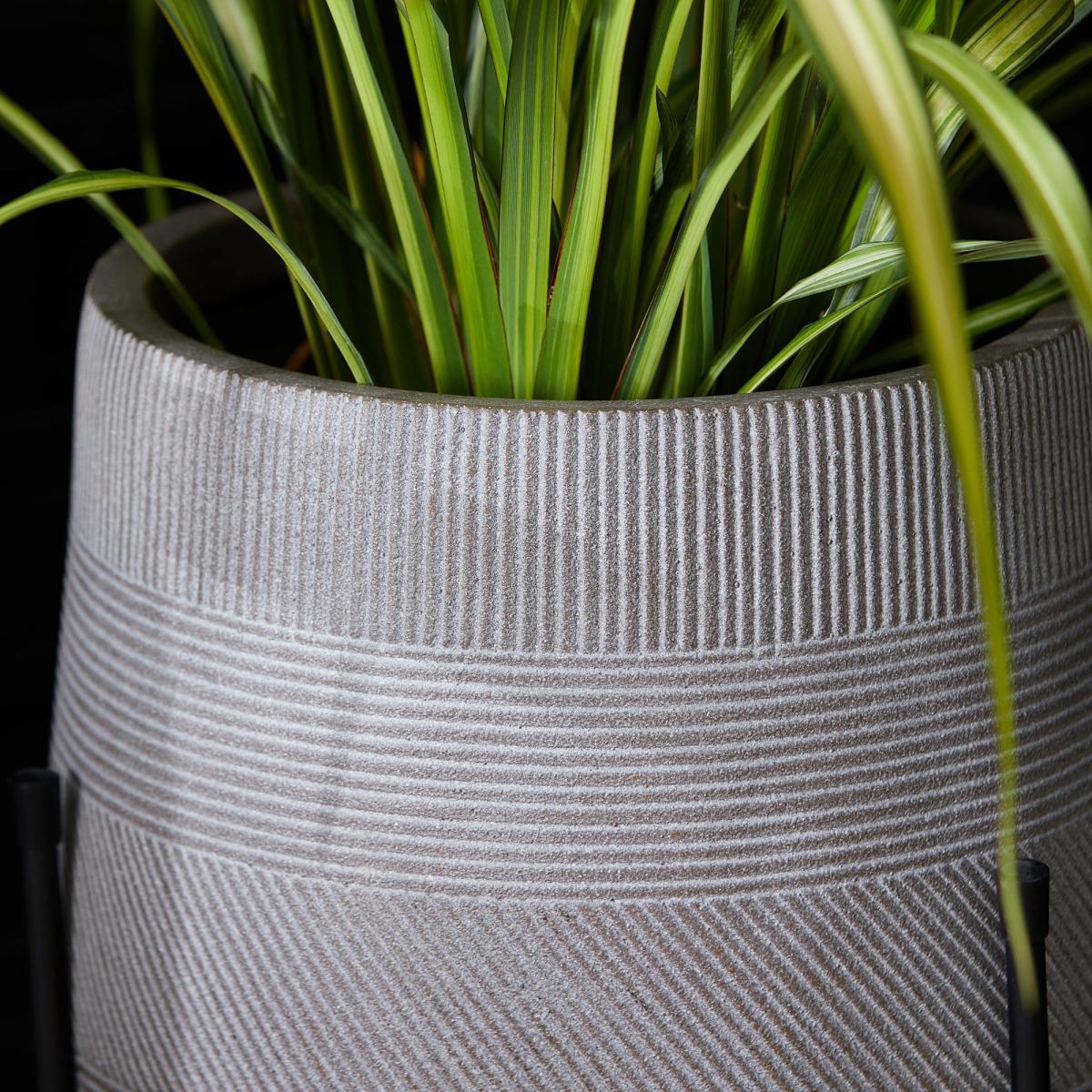 Fibre Clay Grey Plant Pot with Metal Stand Off-White