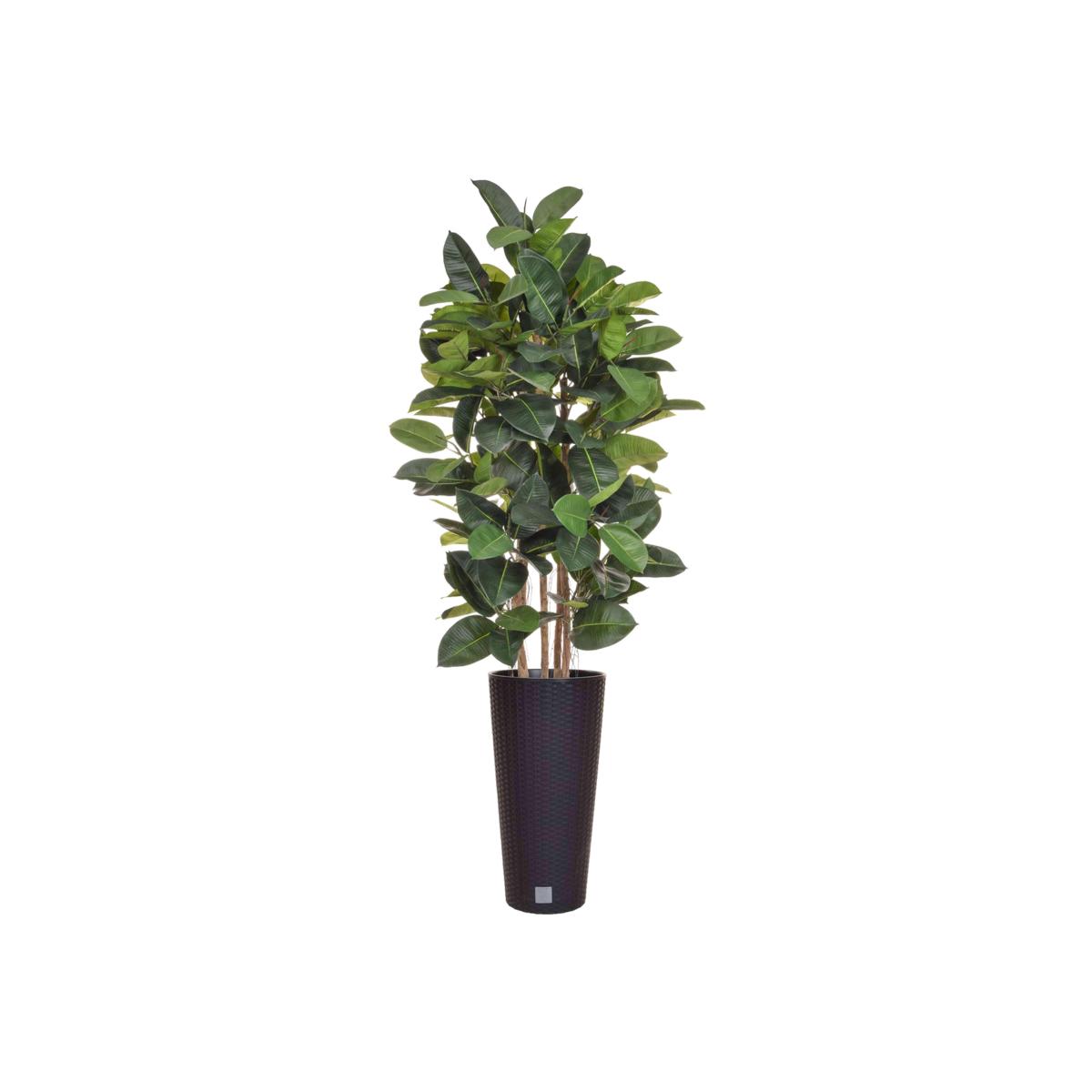 Bring home some no-maintenance greenery in the form of this tall and very lifelike Ficus plant in a stylish round black planter. Why you'll love it This lush Ficus tree is presented in a contemporary round pot. The perfect finishing touch. Silky leaves have an authentic natural sheen. Real wood stem. Stylish round planter has a black rattan-effect finish. This Ficus tree is part of the Furniture Village home accessories collection. What you need to know For indoor use only. Clean periodically with a feather duster, microfibre cloth or damp cloth. Dimensions Pot diameter: 45 cm (18 inches) Total height: 180 cm (71 inches)