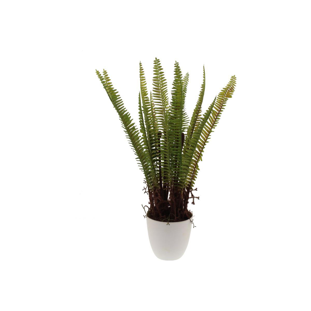 Presented in a white plant pot, this artificial fiddle-head fern plant features a green colourway with a realistic looking finish.