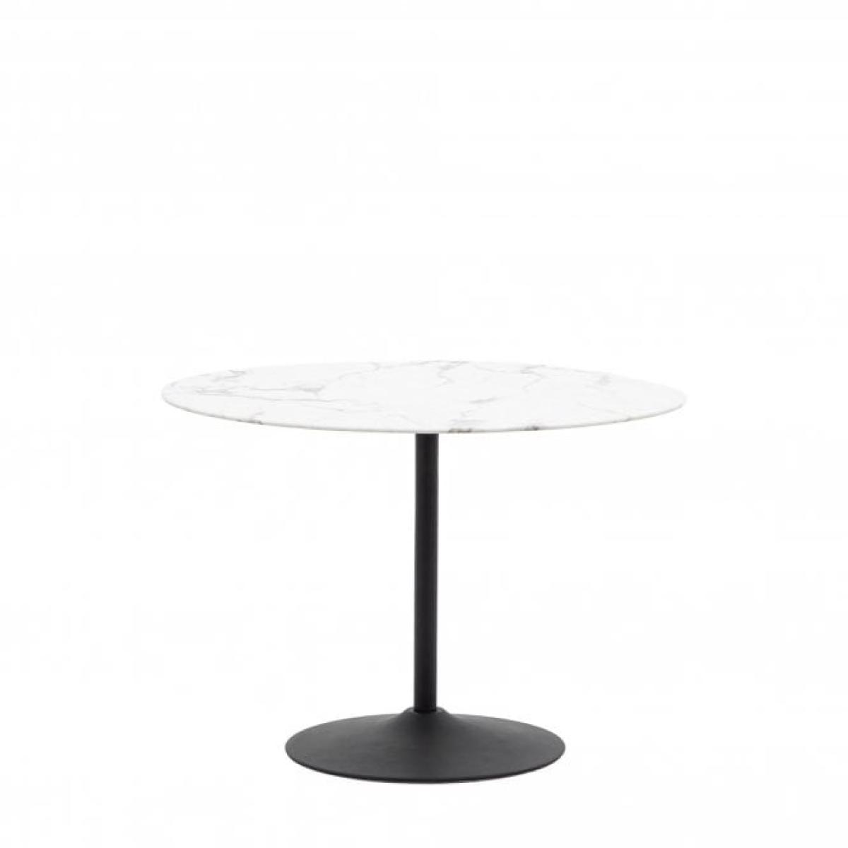 With a sophisticated round faux white marble glass top and smoothly curved dark chrome base, this table is stunningly modern. Seating 4 people, it is great for a smaller space where style is still essential.