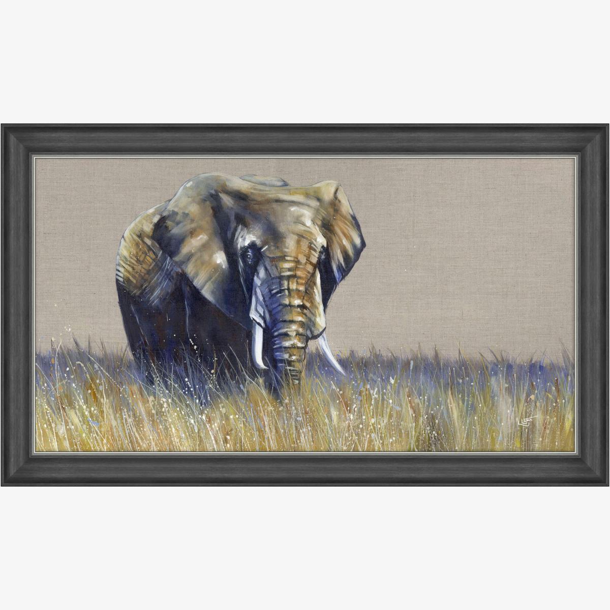 This elephant print offers a relaxed yet sophisticated touch that works well in both contemporary and rustic interiors. I love how the muted tones and natural subject matter add warmth without overpowering a space. It pairs beautifully with earthy colour palettes or neutral schemes, serving as a focal point on feature walls or in gallery arrangements. For practical styling, consider placing it above a console table or sofa to anchor the room, and complement it with other nature-inspired pieces or textured textiles to create a cohesive look. The frame's slim profile keeps the overall appearance sleek and modern, making it a versatile piece for various interior styles.