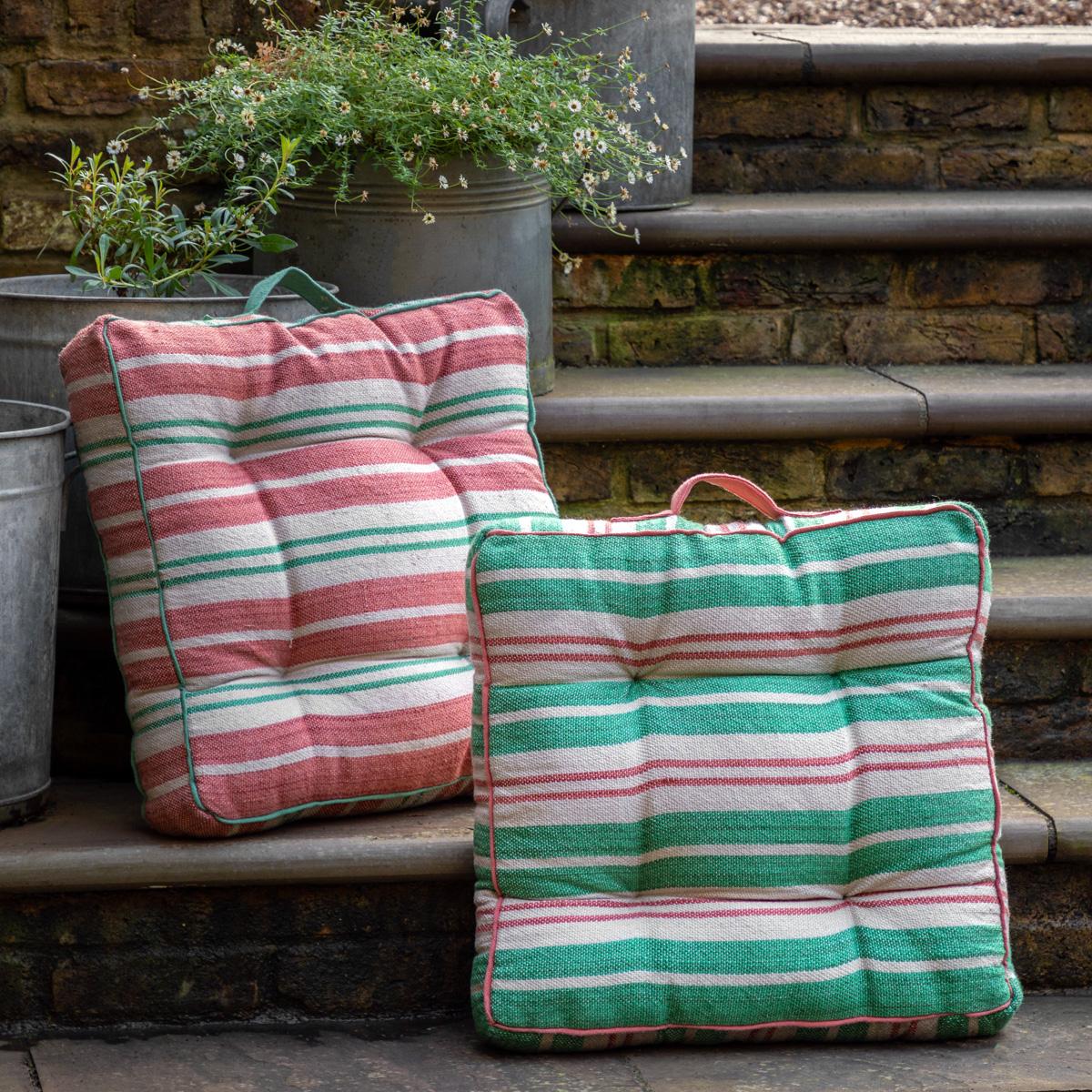 Fiesta Stripe Woven Floor Cushion in Apricot