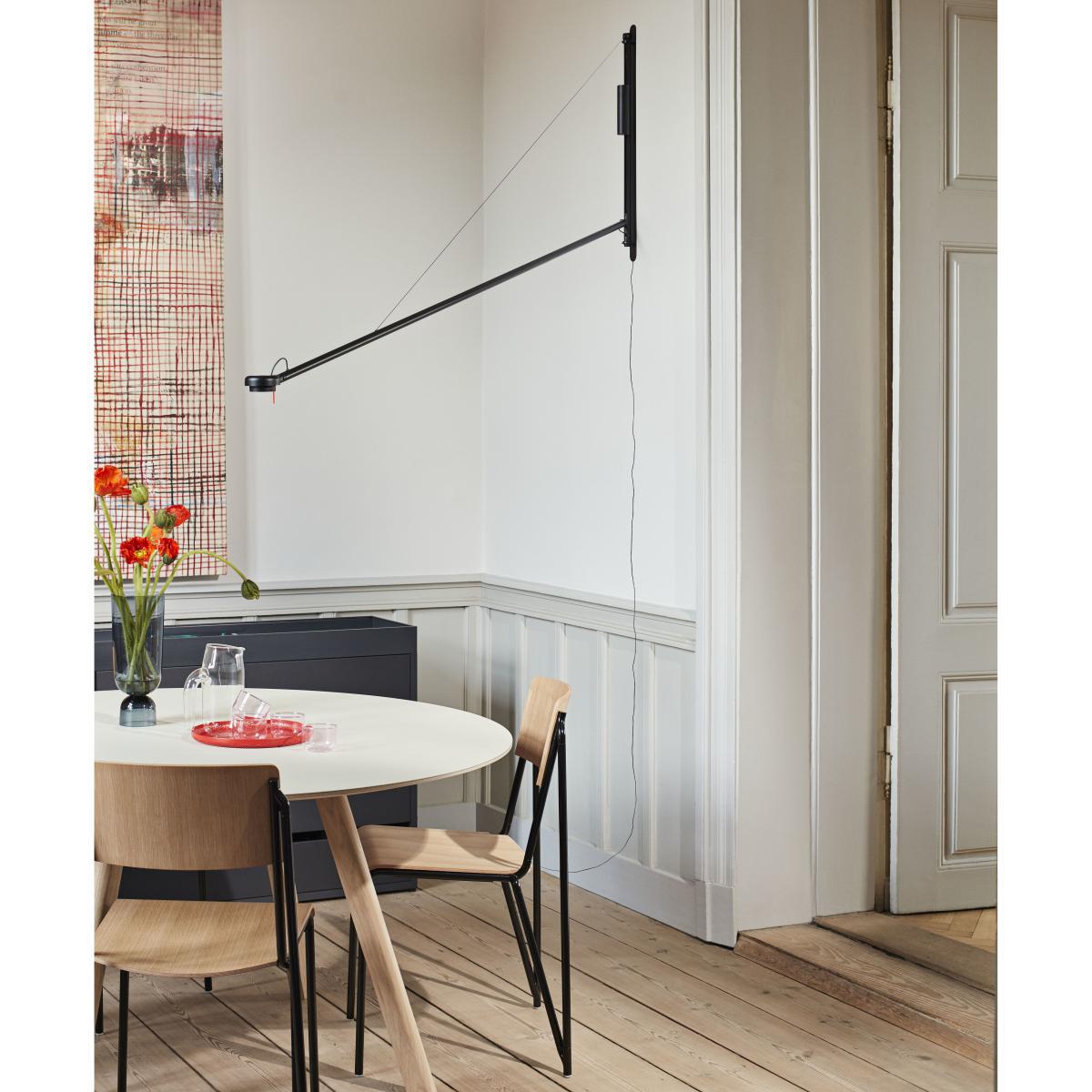 A superb exercise in balance for this collection of Fifty-Fifty lamps designed by Sam Weller! As a big fan of physics and engineering, this English designer named the collection in reference to the counterweight system that creates perfect balance between the two parts that make up the lamp: the arm and the base. This very large wall light (L 187 cm) is completely mobile: the long swivel arm pivots and tilts to precisely match your needs. The sophisticated cable and counterweight system allows perfect stability of the arm in all positions. The head of the lamp is equipped with a touch-sensitive dimmer. The Fifty-Fifty wall lamp stands out for its functionalist allure, a sober, timeless design that continues to stand the test of time. By lighting from above, the Fifty-Fifty wall lamp can replace the use of a pendant. It’s also ideal in a kitchen above a worktop, at the head of the bed, or in a living room as a reading light.