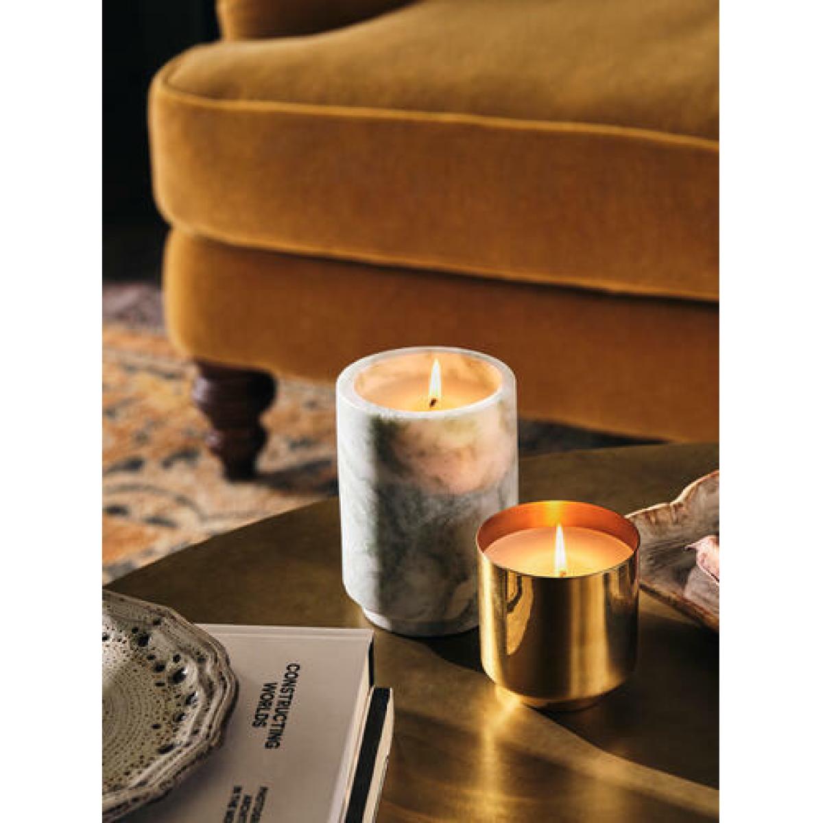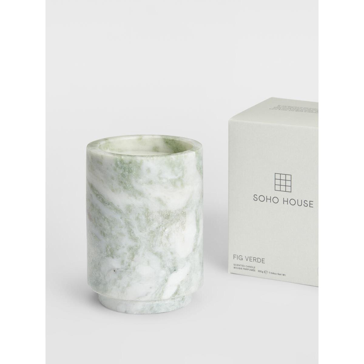 Our Fig Verde fragrance is infused with Green Figs, Dried Fruitand Rose Petals to recall evening strolls around the courtyardgarden at Soho House Istanbul. The scented wax is hand-poured intoour onyx marble Verona vessel, which is characterised bydistinctive veinings, making each one unique. Use the candle as astandalone feature for a mantelpiece or bookshelf. Scent notes. Top: Cassis. Middle: Fig. Base: Amber. Large candle with Fig Verde fragrance. Solid onyx marble vessel with natural variations. Hand-poured in England. Vegan-friendly blend of mineral and vegetable wax. Approximate burn time: 50 hours. Bespoke fragrance created by an expert perfumer for Soho. House.