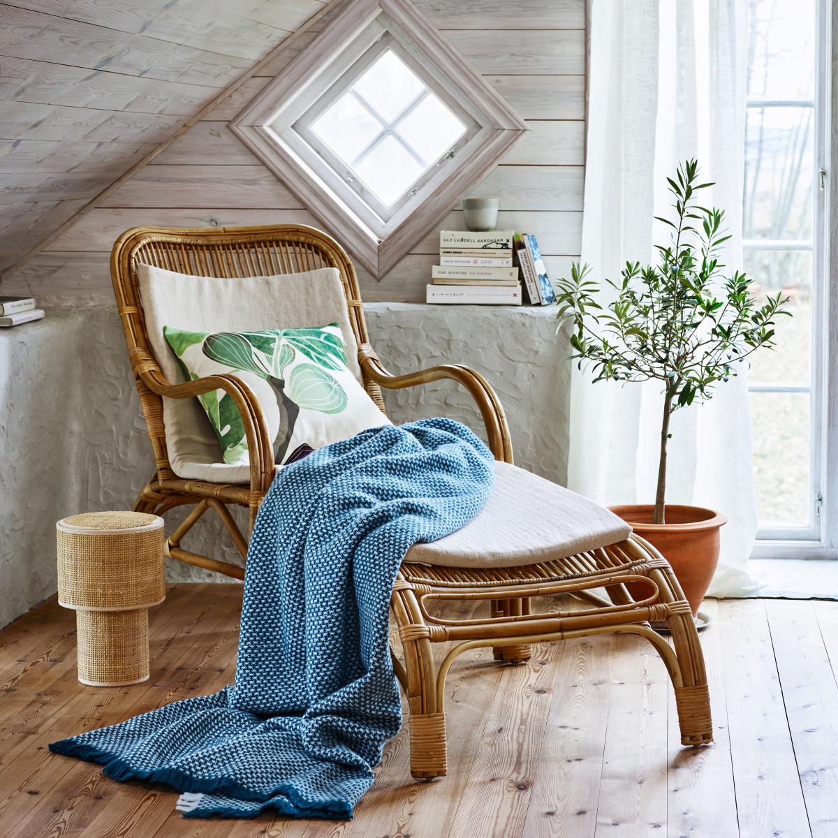 Figs pillow case from Klippan Yllefabrik is an interior design piece made of OEKO-TEX-certified cotton with a nature-inspired printed motif. Anna Handell is behind the oversized figs and leaves pattern. This beautiful pillowcase works just as well on a bench in the hallway as on the sofa in the living room and can be combined with other textiles in the Figs series for a lovely consistent overall look.