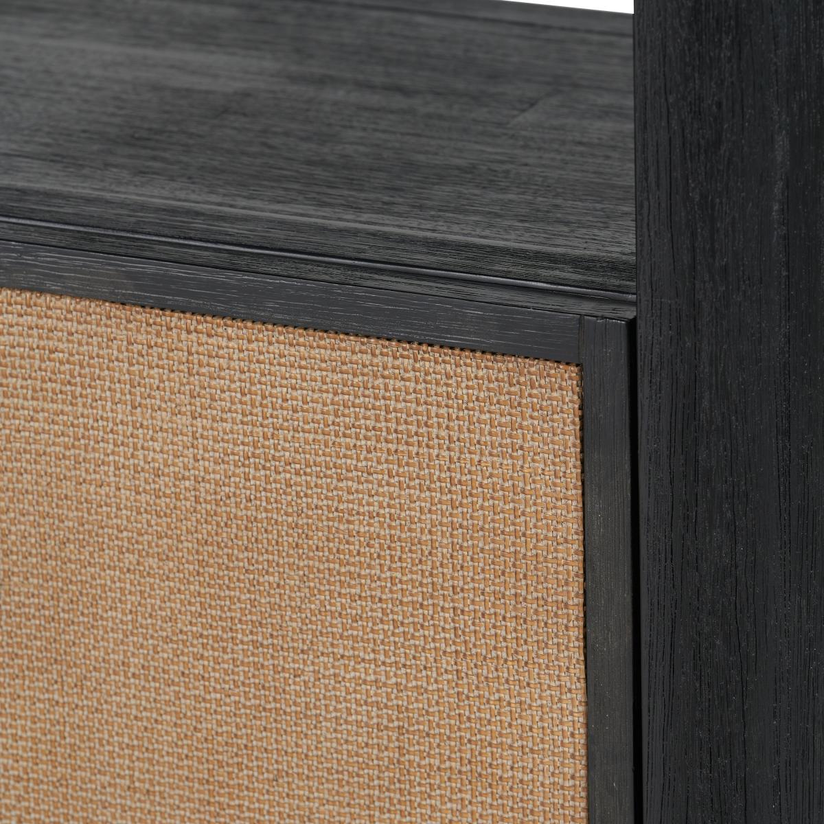 Fiji 2 Door Shelving Unit, Acacia Wood and Rattan Black