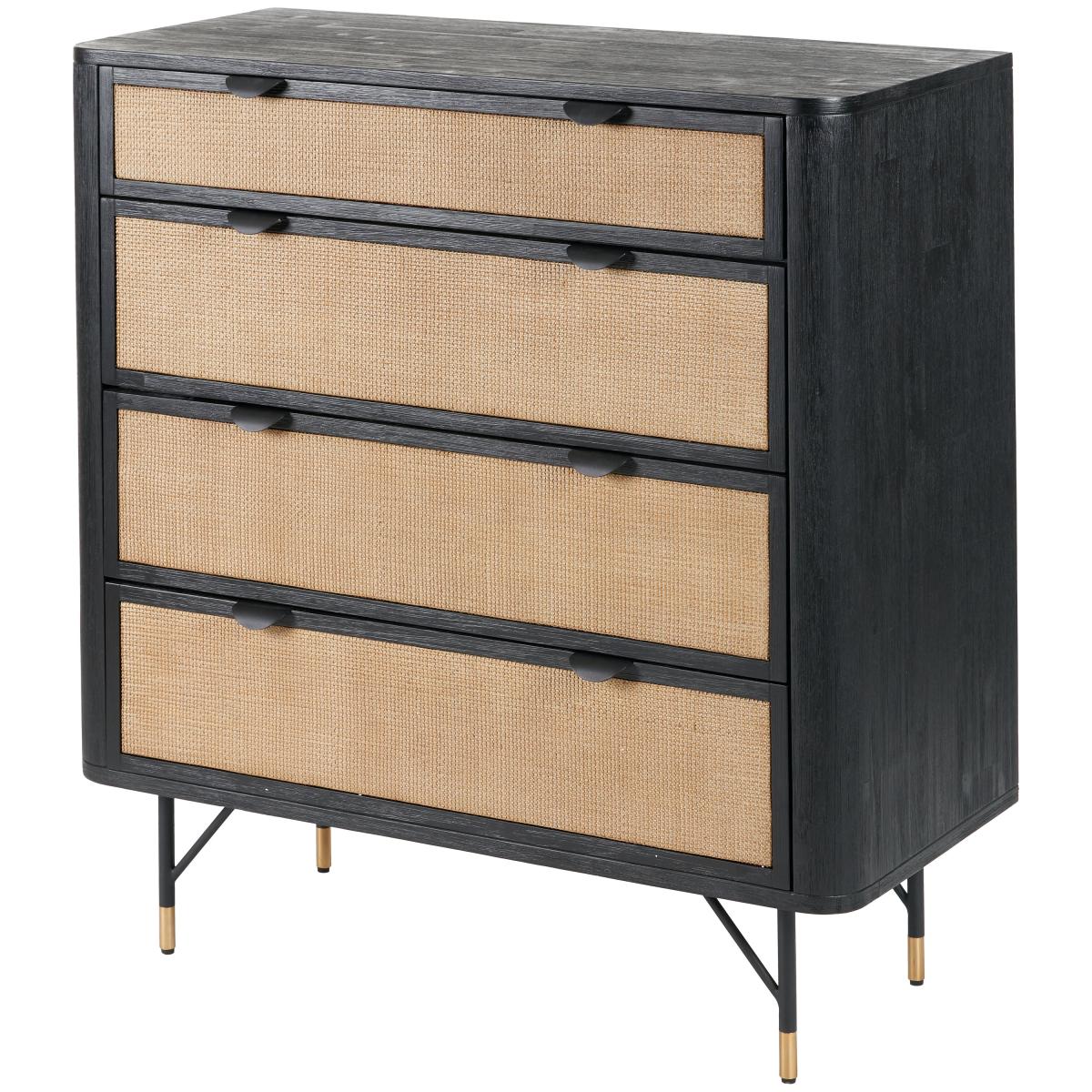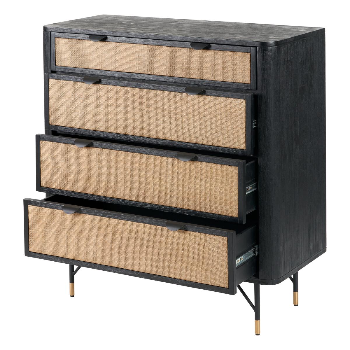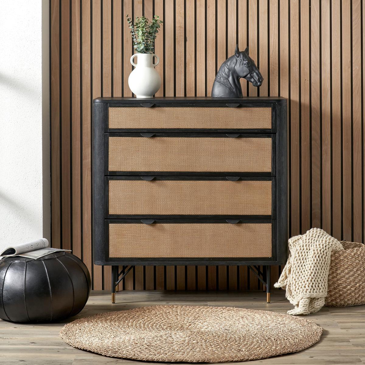 Fiji 4 Drawer Chest, Acacia Wood and Rattan Black