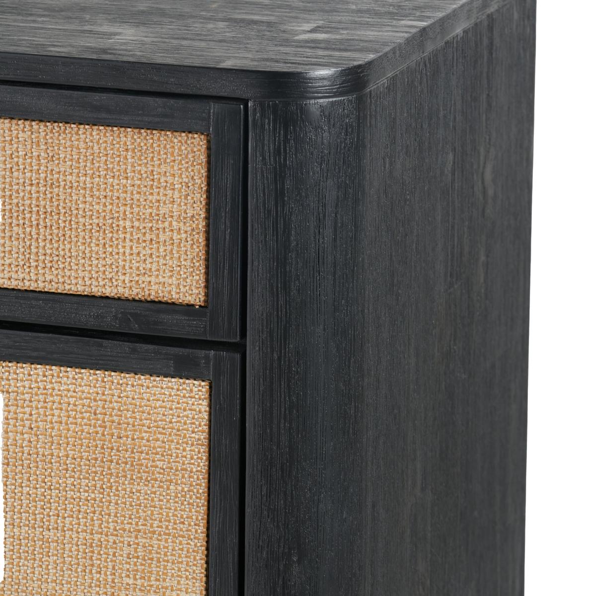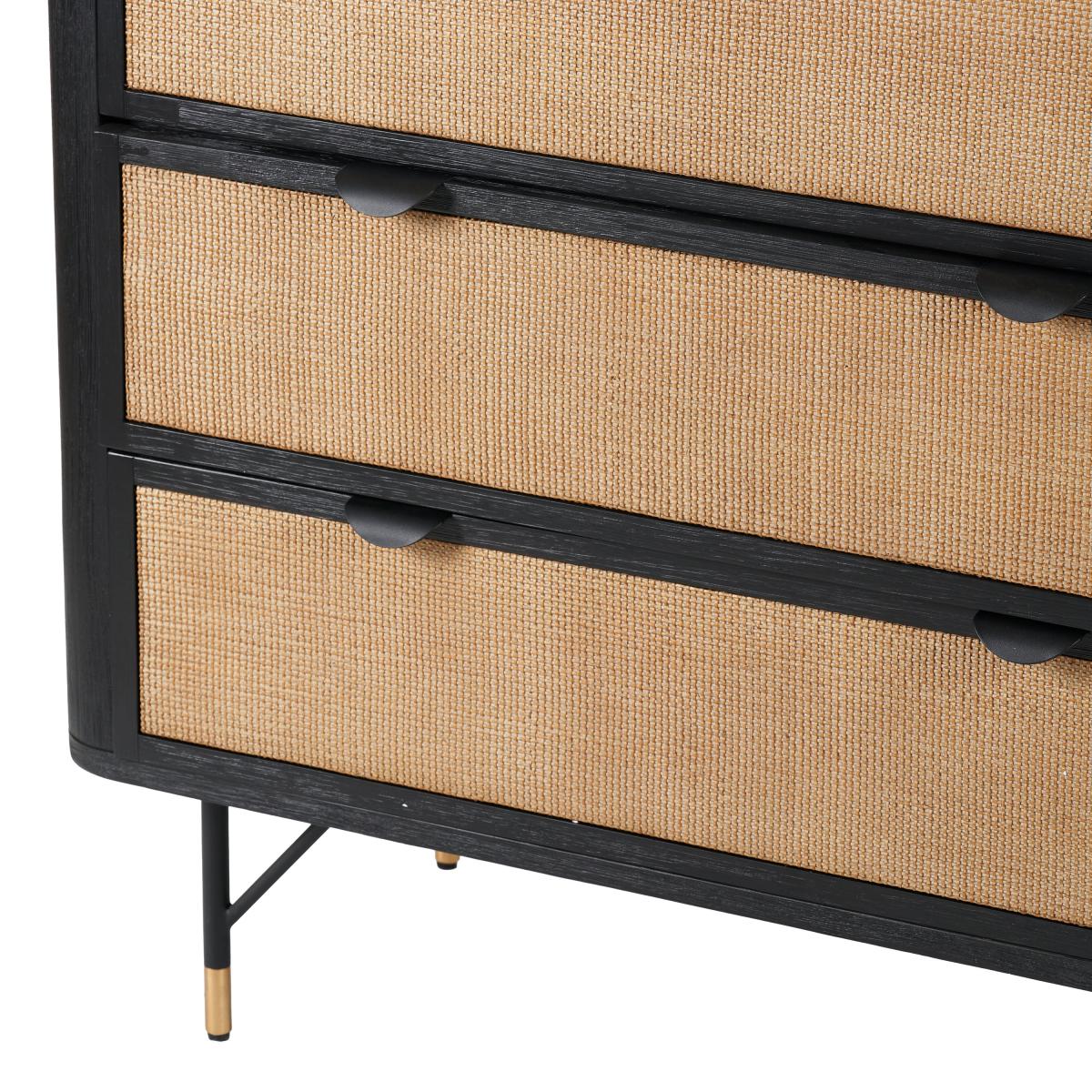 * Acacia Wood frame* Contrasting colours* Rattan panels* 4 spacious drawers Hand-crafted in Vietnam, this stunning unit combines the robustness of black-finished Acacia wood with the charm of natural rattan drawers. The four spacious drawers offer ample storage for your belongings, making it both a functional and stylish addition to any room.