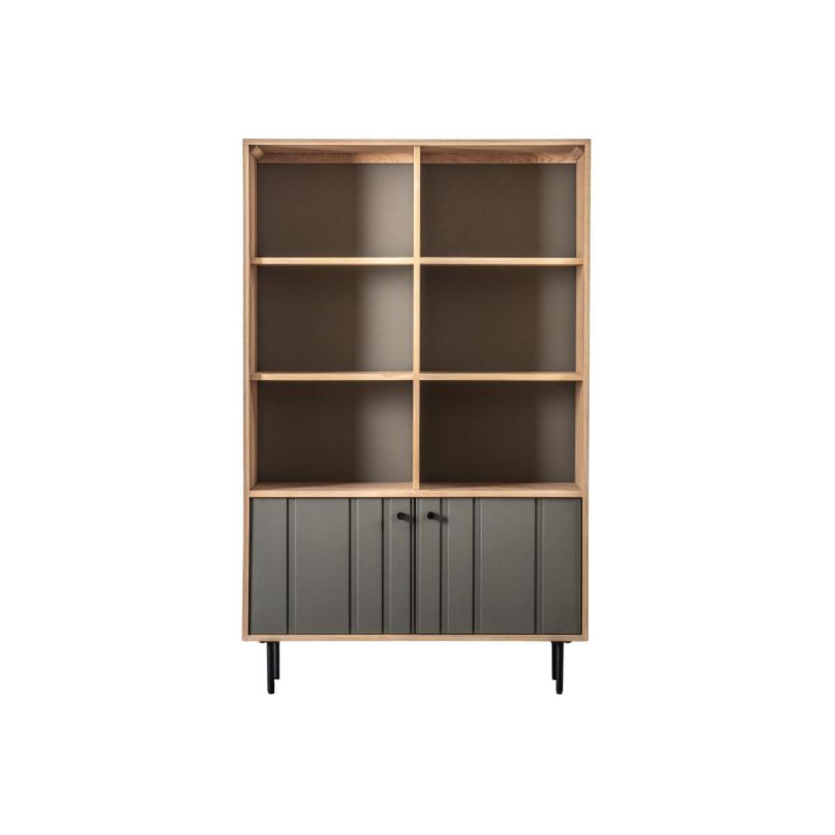 The Fuji furniture collection features a fusion of Japanese minimalism and Scandi style to create these beautiful contemporary Japandi design pieces. Natural oak has been paired with mid-grey painted, with routing to create a relief design adding detail to the doors. The Fuji Open Display features six open shelves, with mid-grey painted panels behind to match the cupboard doors. Slim black metal legs and matching handles complete the stylish design. Material: Oak. Colour/Finish: Grey.