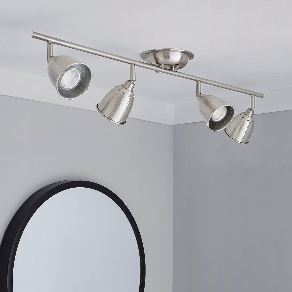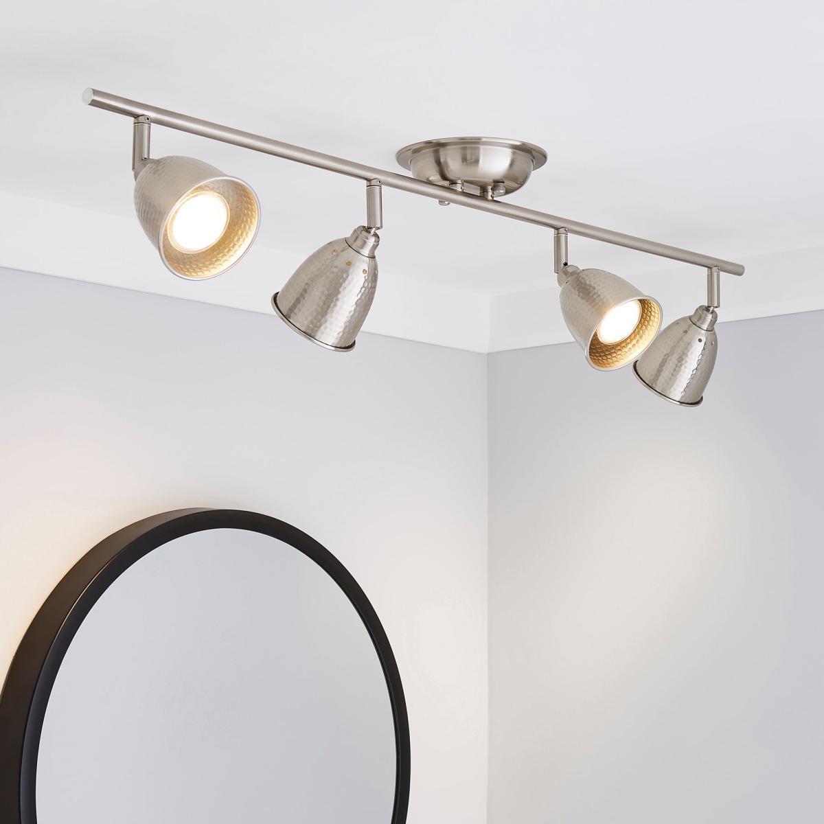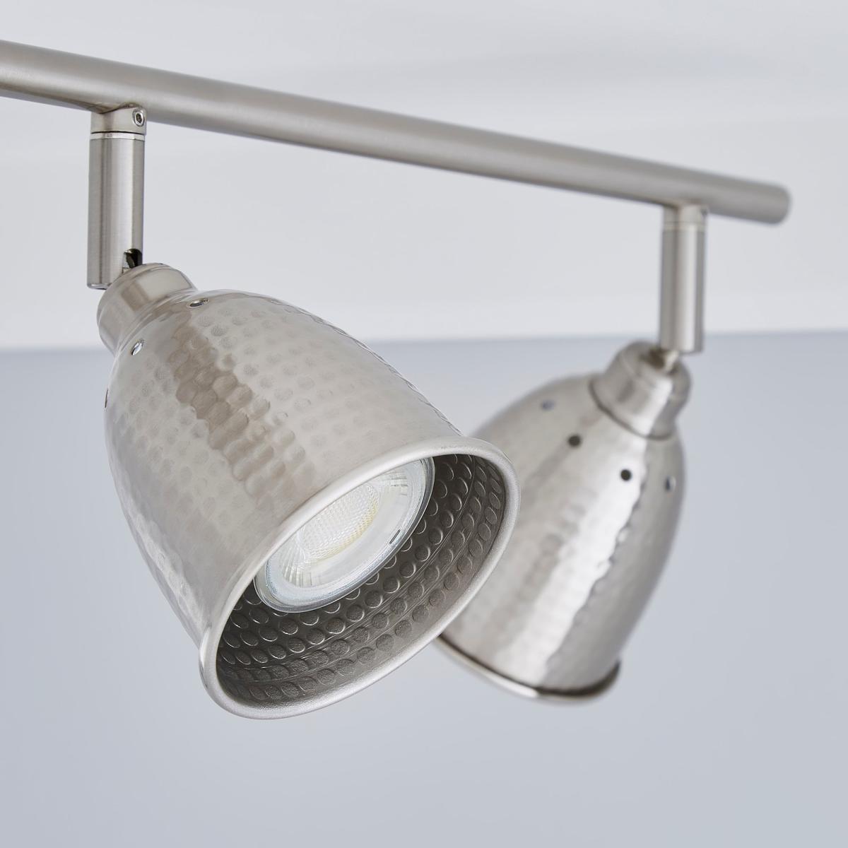 Featuring four spotlights with hammered-effect shades, this ceiling light is finished in a satin nickel effect and is dimmer switch safe. Please note that bulbs are not included with this light feature.