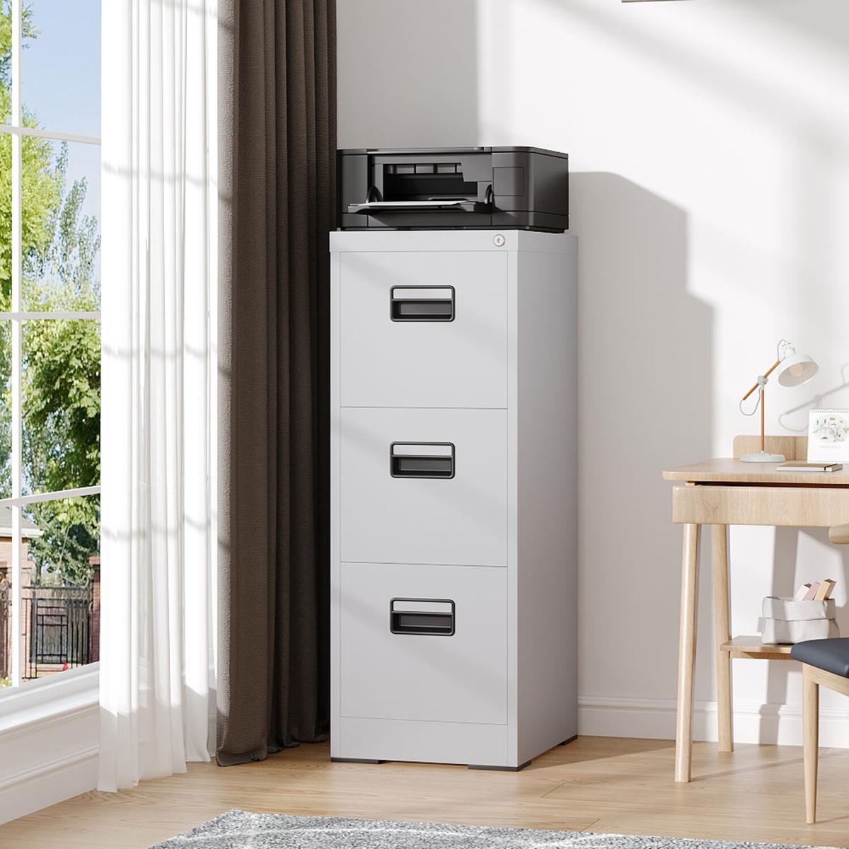 This filing cabinet is uniquely designed and functional. The many drawers provide ample storage space and are suitable for storing documents, contracts and other materials. Each drawer is fitted with handles and slide rails for easy and quiet opening and closing. In addition, all drawers are locked with one lock, and it is equipped with an interlocking system that allows only one drawer to be opened at a time, effectively preventing document mix-ups and mishandling while keeping documents secure.