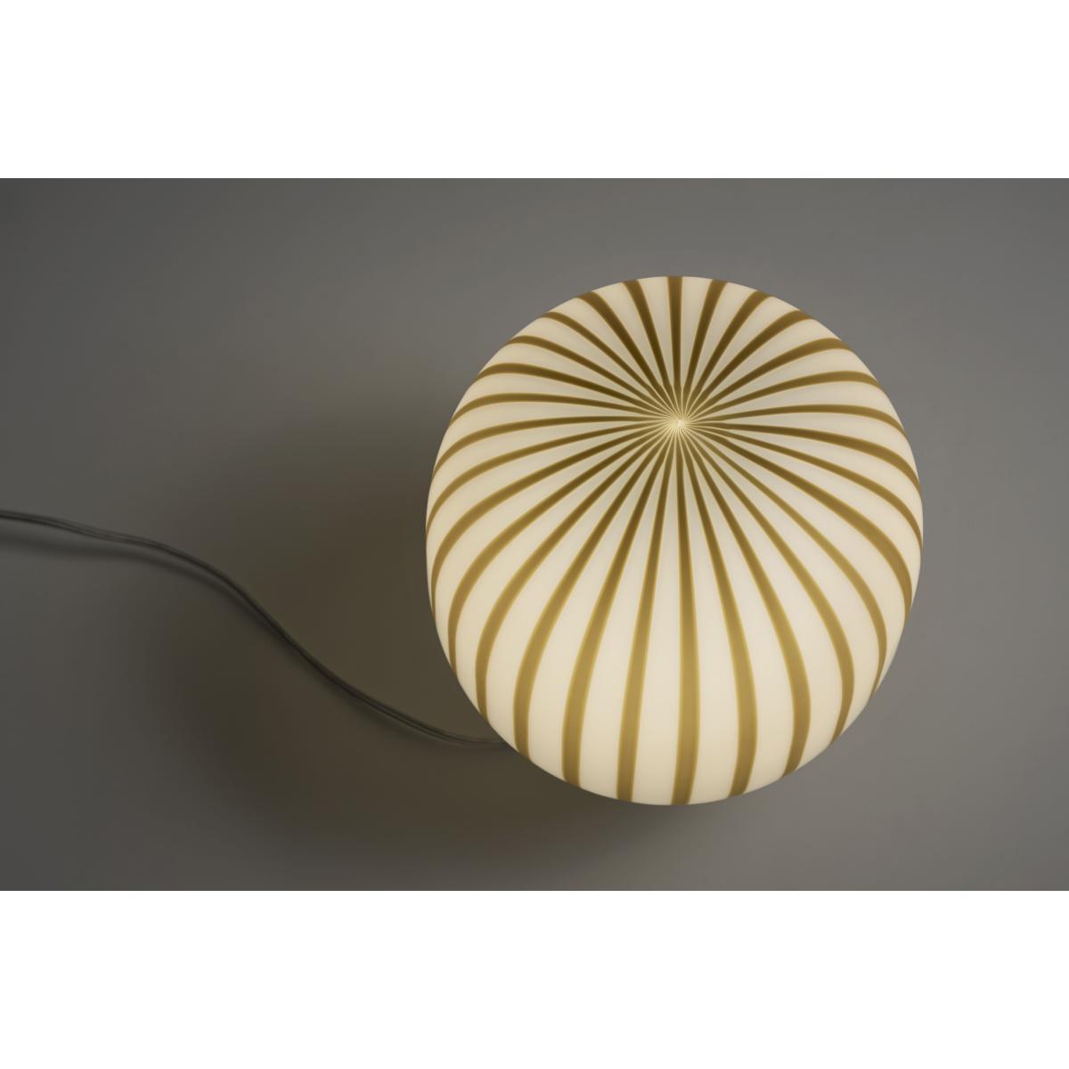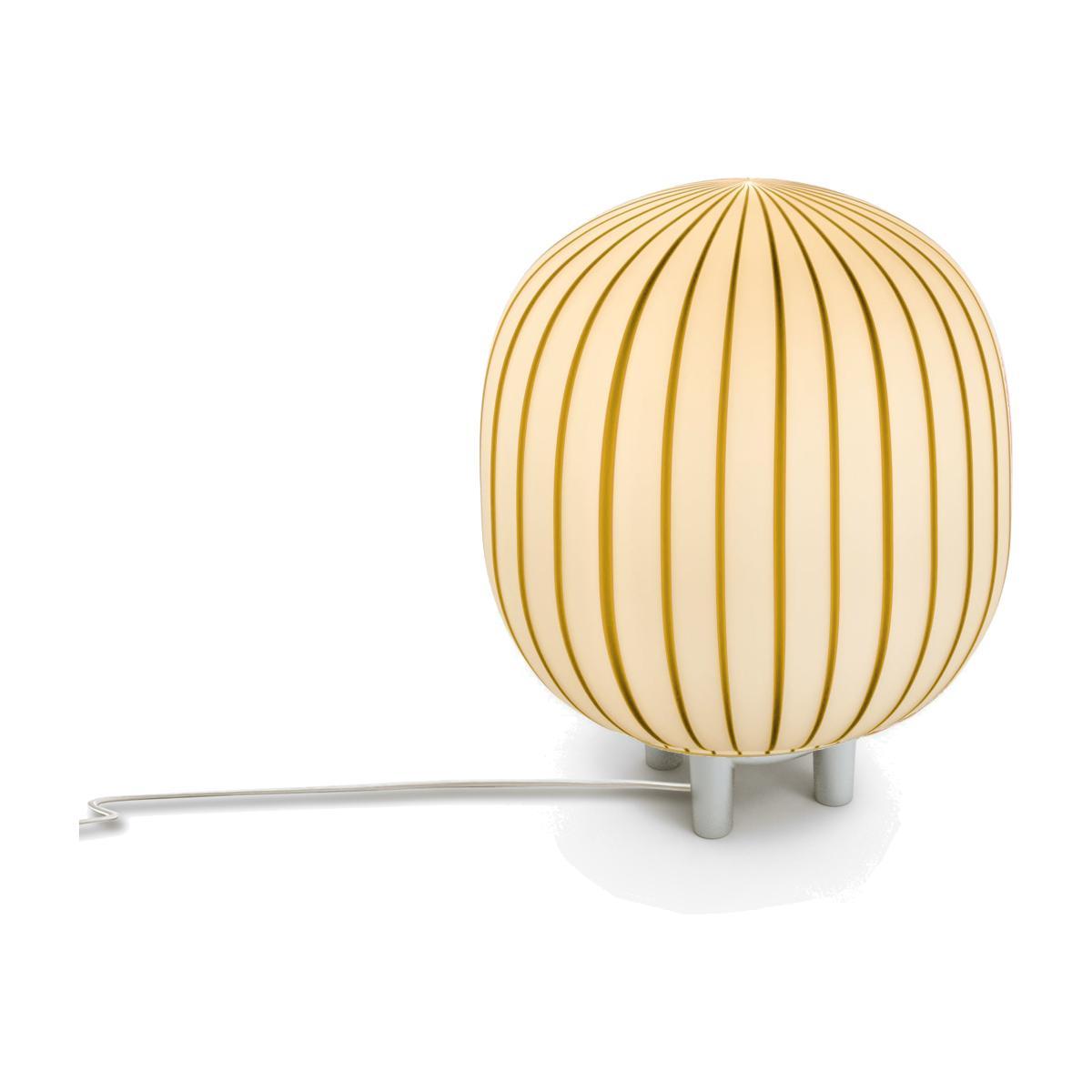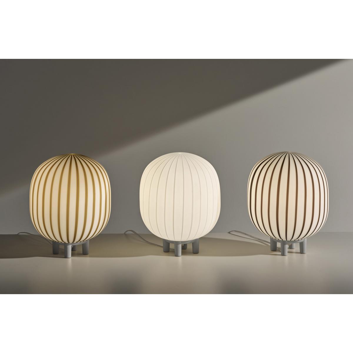 With the Filigrana lamp collection, British designer Sebastian Wrong revives the links with ancestral history and know-how. These handcrafted filigree Venetian glass lamps use an old technique dating back to the 16th century. Invented on the island of Murano in Italy during the Renaissance, this technique involves rolling and stretching strips of coloured glass on the surface of the molten glass before blowing it. These bands of contrasting colour give the collection soft symmetrical effects which are reminiscent of boiled sweets. The result of complex know-how, each piece is unique. The lacquered cast aluminium base is discreet to highlight the incredible lampshade. This lamp has a dimmer.