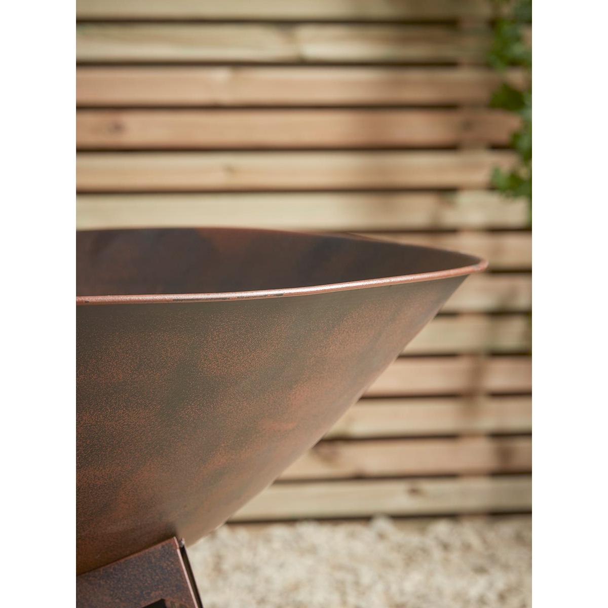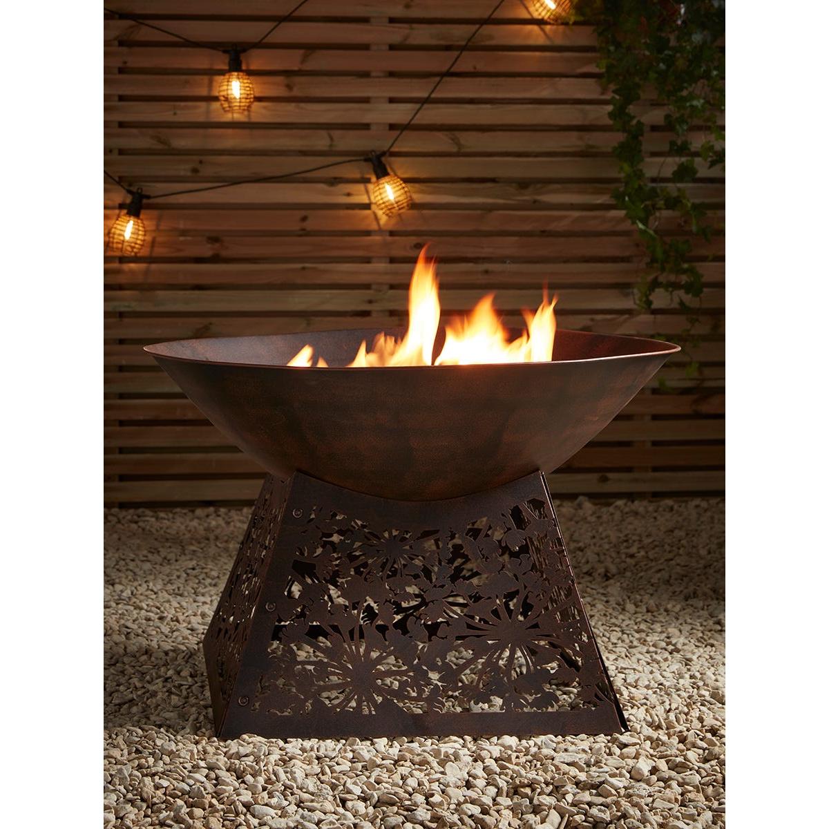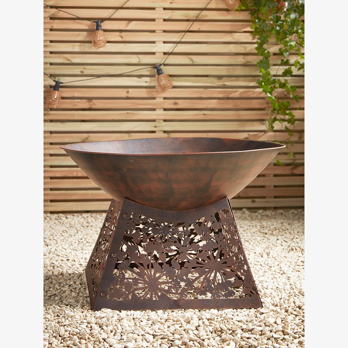A more delicate take on a traditional firepit, this design features a solid fire bowl placed on a tapered base which is decorated with cut outs of cow parsley stems. The brazier has a lightly burnished finish and will make a graceful and warming welcome to your outdoor area on dark evenings and cooler days. Team with comfy outdoor seating and cosy outdoor throws.