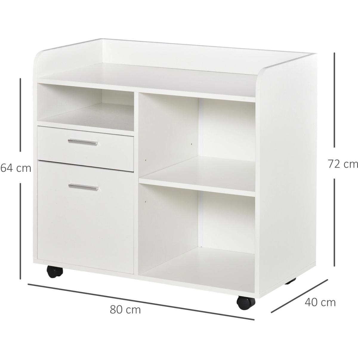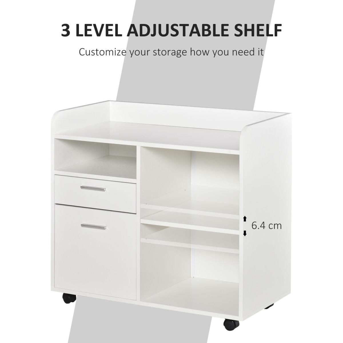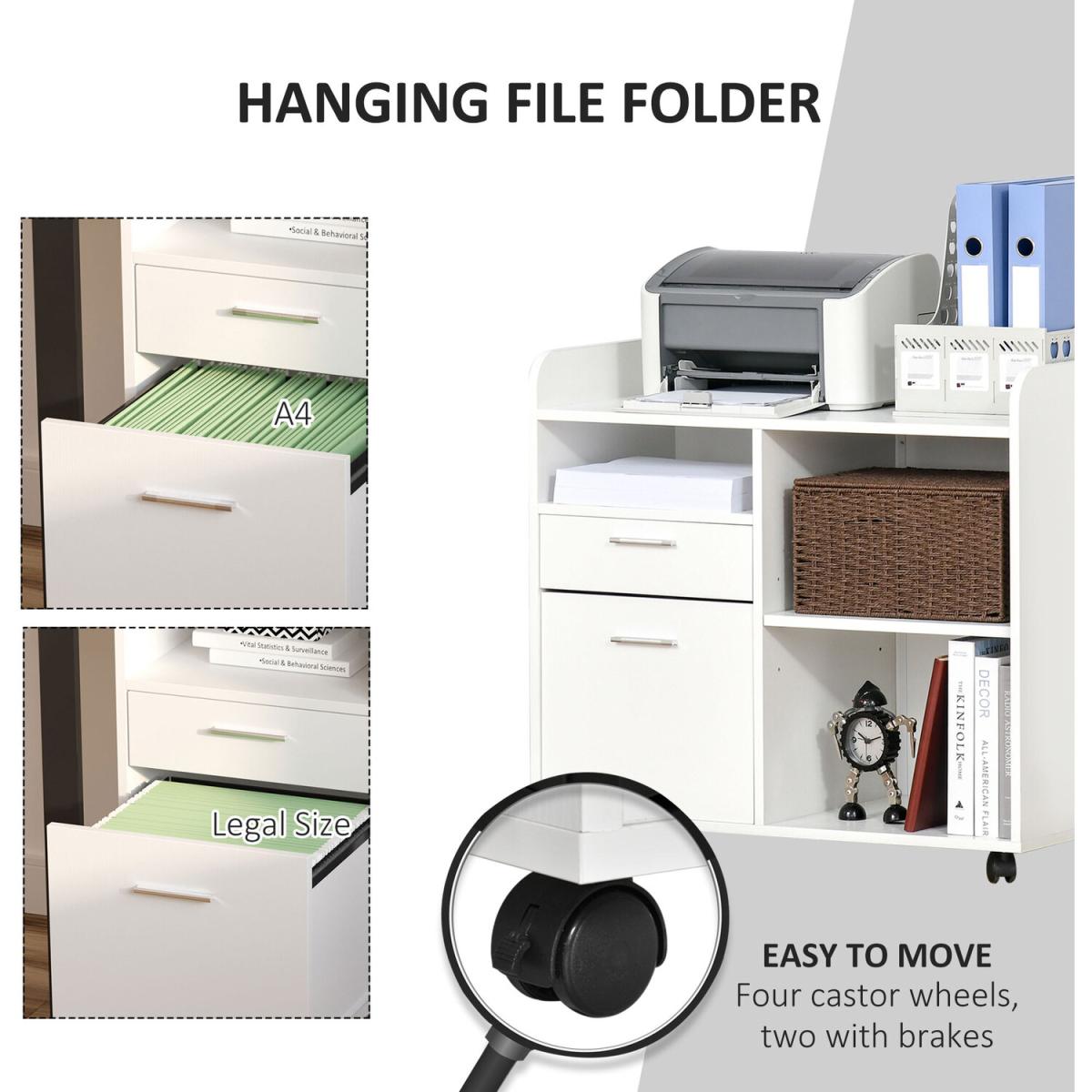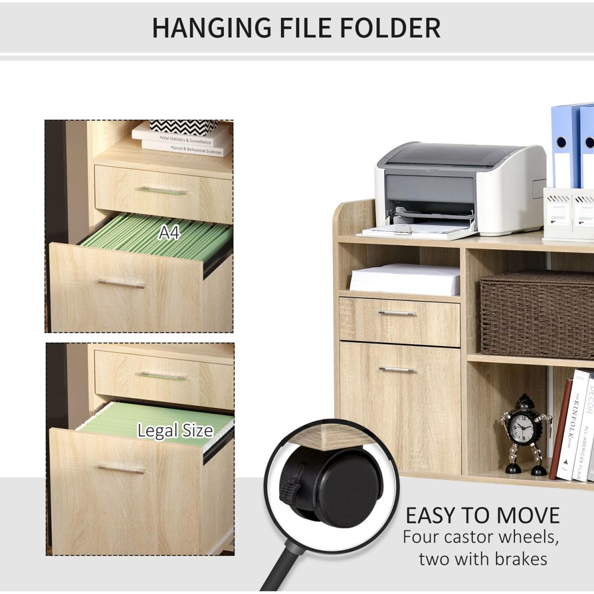 Does the office lack storage space for printers? The multi-function filing cabinet helps you organize the whole office. With the open and concealed storage spaces, the small drawer organizer provides you ample and diverse storage space. Your files, paper, and office machines can be easily organized inside or on top of this printer cabinet. With the four universal caster wheels, the office cabinet possesses more mobility. The best choice for your better working environment.