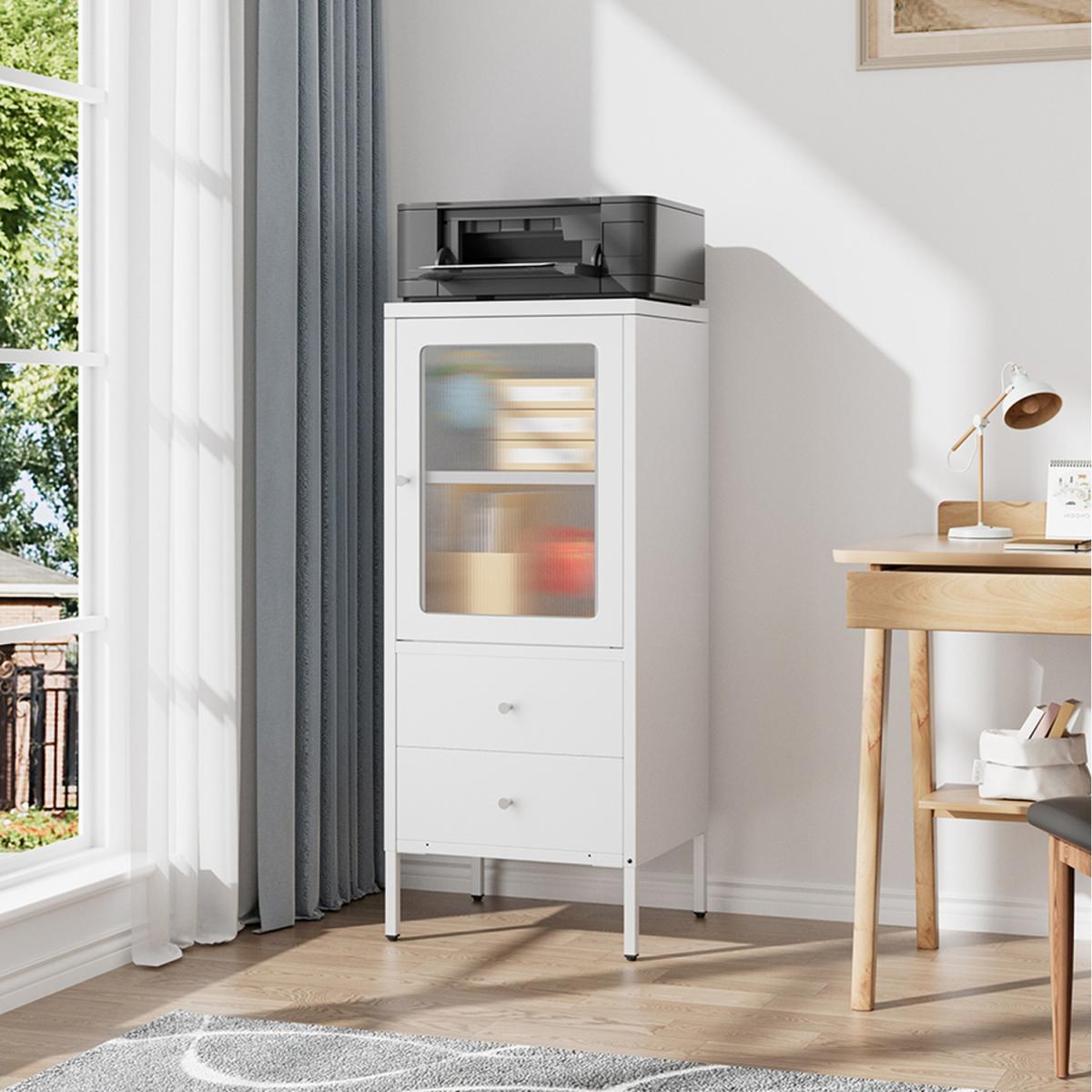 Filing Cabinet with Drawers and Adjustable Shelves - White