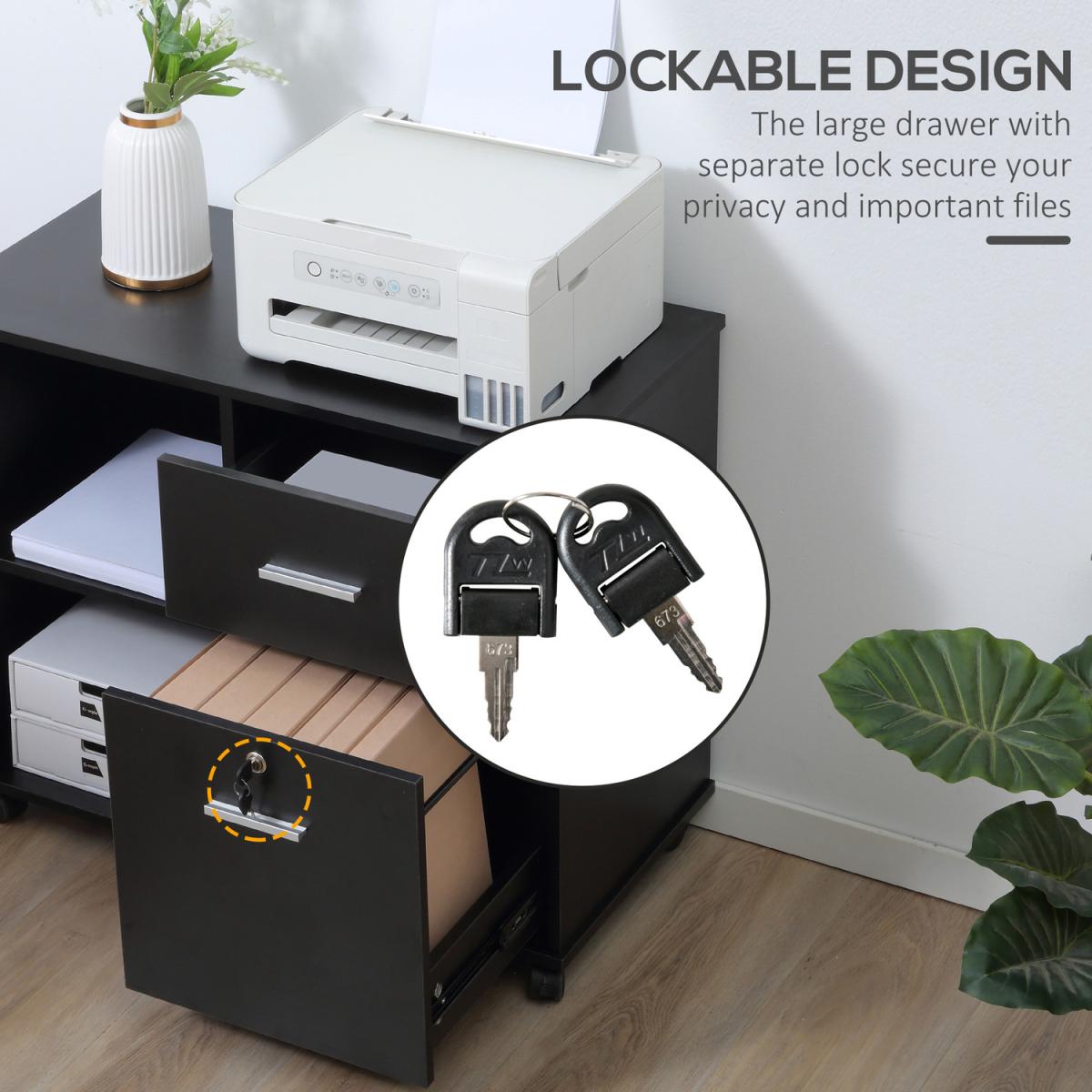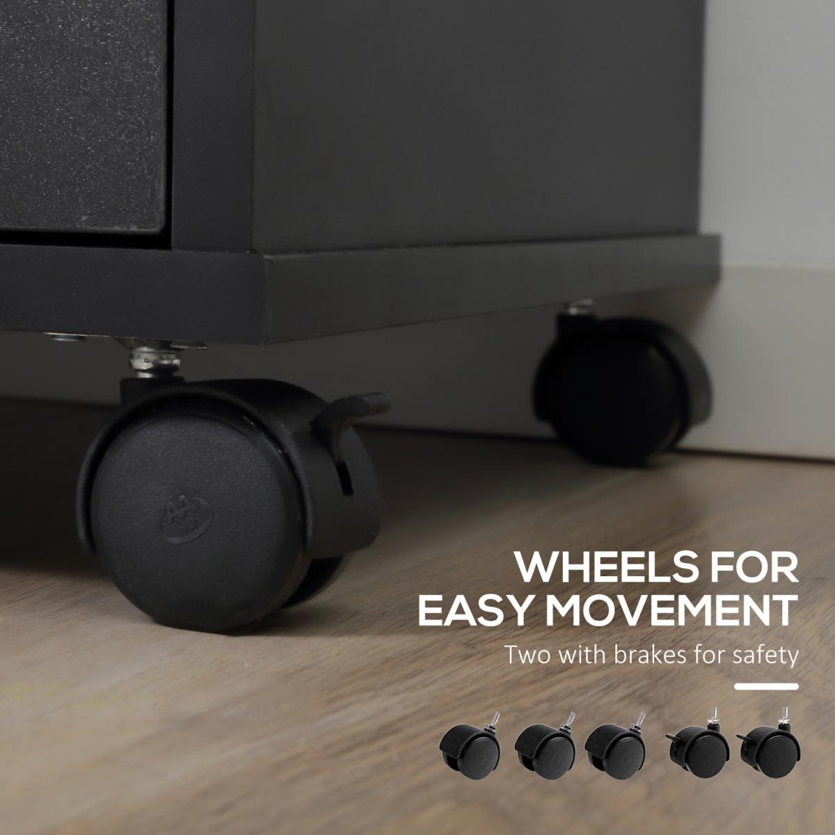 Filing Cabinet with Wheels, Mobile Printer Stand for A4 Documents - Black