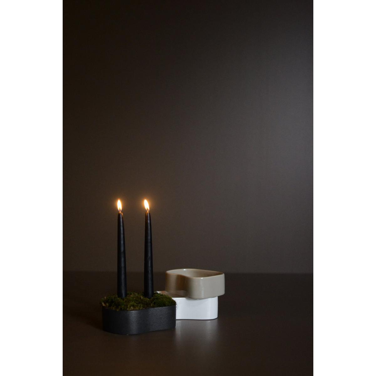 Fill me up candlestick 15 cm from DBKD is made of ceramic and has an asymmetric shape with a candle holder for tapered candles. The candlestick has a minimalist ahnden simple design and can be filled with different Christmas decorations to create a personal style. Display the Fill me up candlestick in a special place in your home and enjoy the beautiful light on dark winter morning pan or dark autumn evenings.