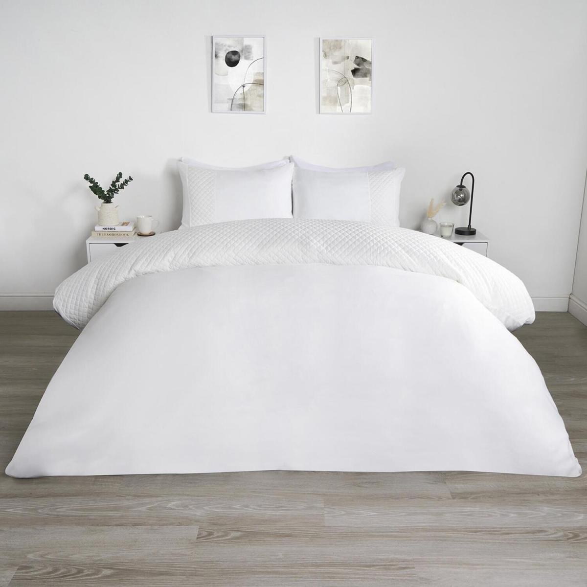 I love this duvet set for its crisp, clean aesthetic - perfect for creating a calm, minimalist bedroom look. The white, filled pinsonic design offers a subtle texture that adds visual interest without overwhelming the space, making it versatile for various interior styles like Scandi, contemporary, or even pared-back luxe. Practical tips include pairing it with neutral-toned bedding or layering with soft throws and cushions in muted colours to add depth. It works particularly well in modern or light-filled interiors, where its fresh simplicity can really stand out. Plus, the superking size is ideal for making a statement or ensuring a plush, cosy feel on larger beds.