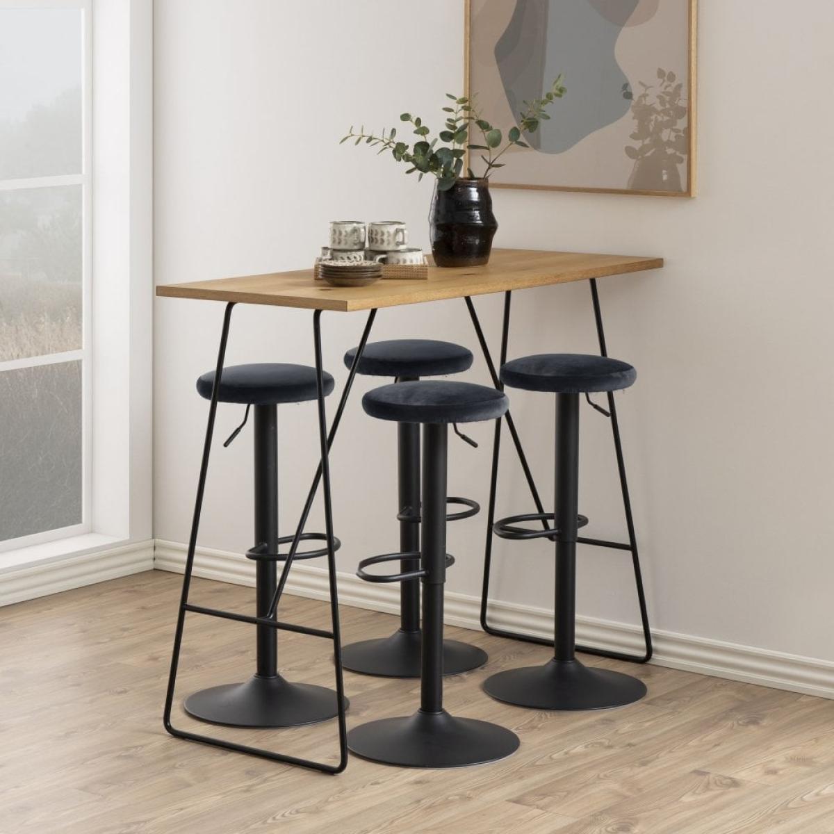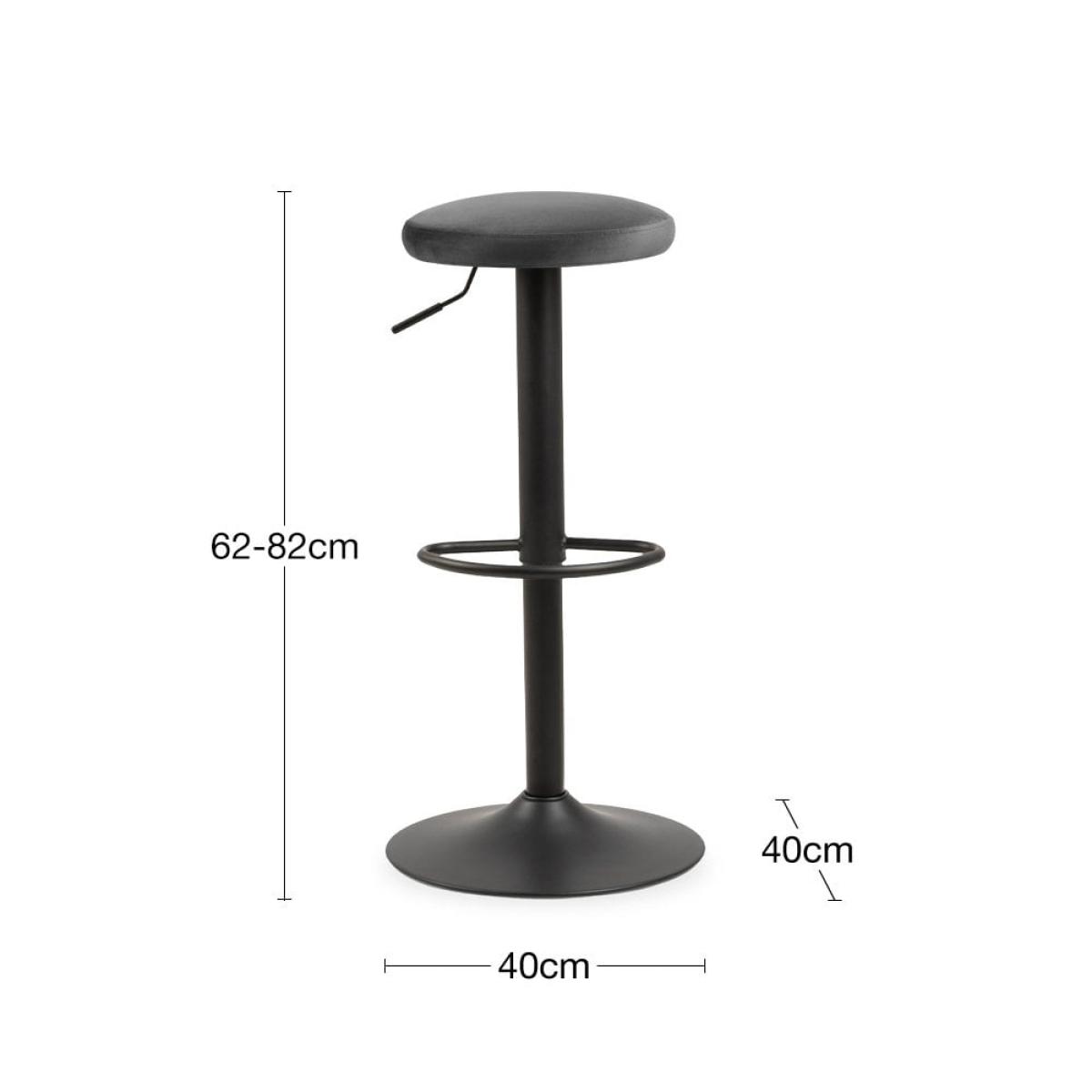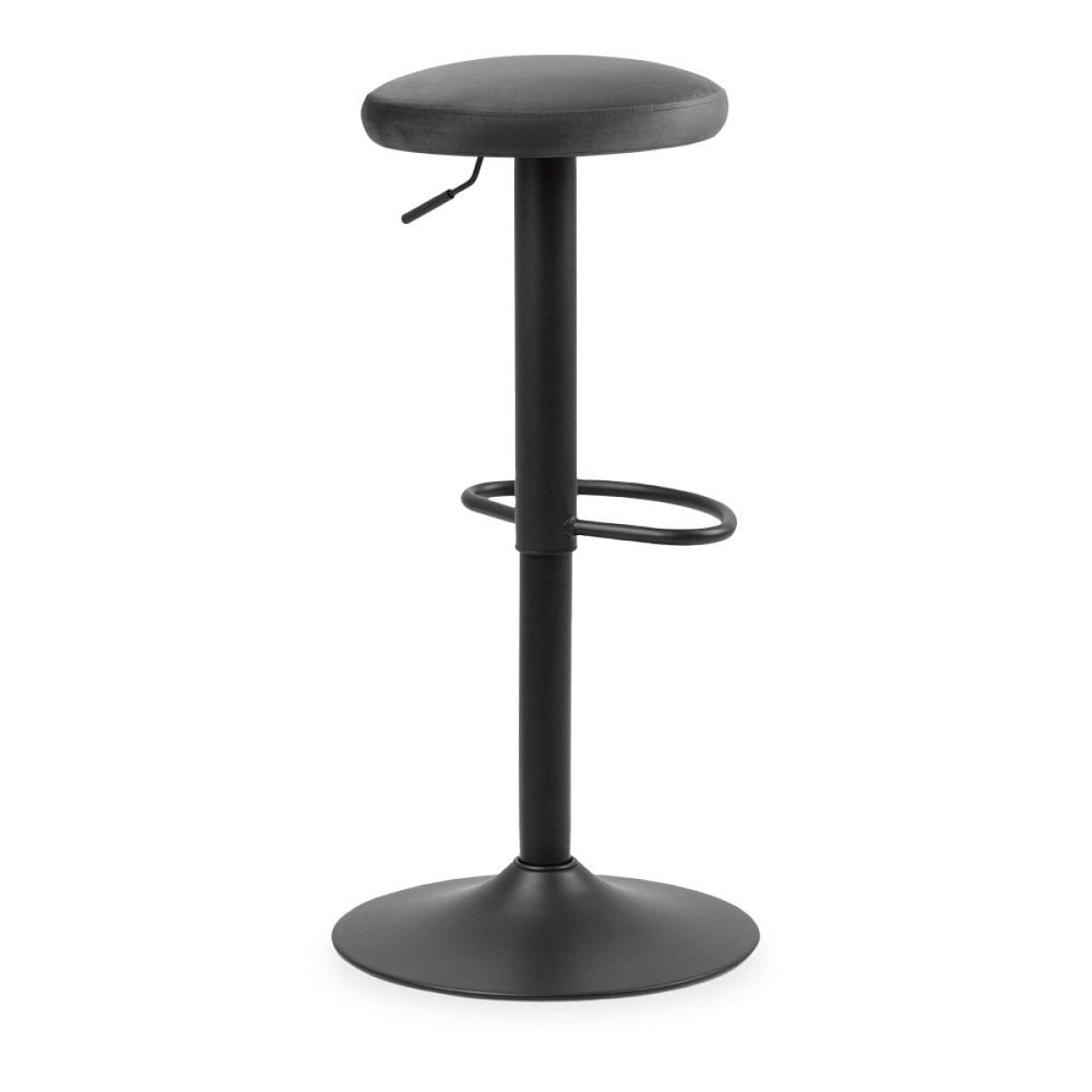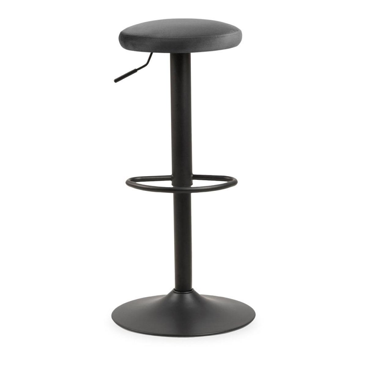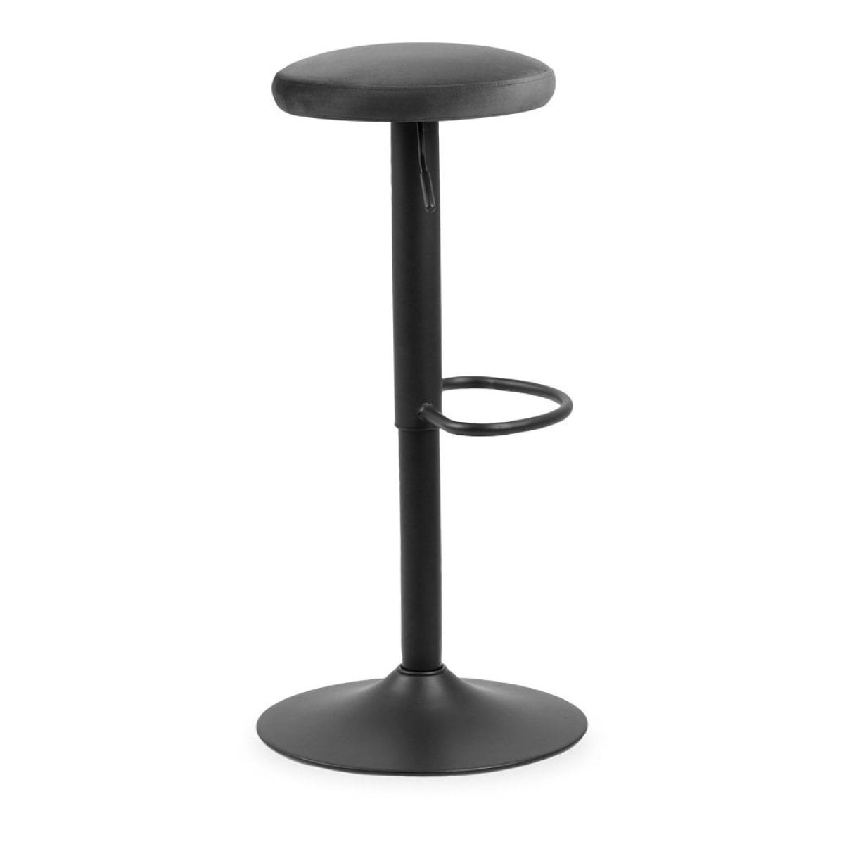 The Finch Adjustable Stool will add a touch of industrial chic to your kitchen or bar area. With a matte black finish and a dary grey velvet padded seat, this stool features gas-lift mechanism to adjust the seat height up or down to your preferred position, footrest, and trumpet foot base for added stability.
