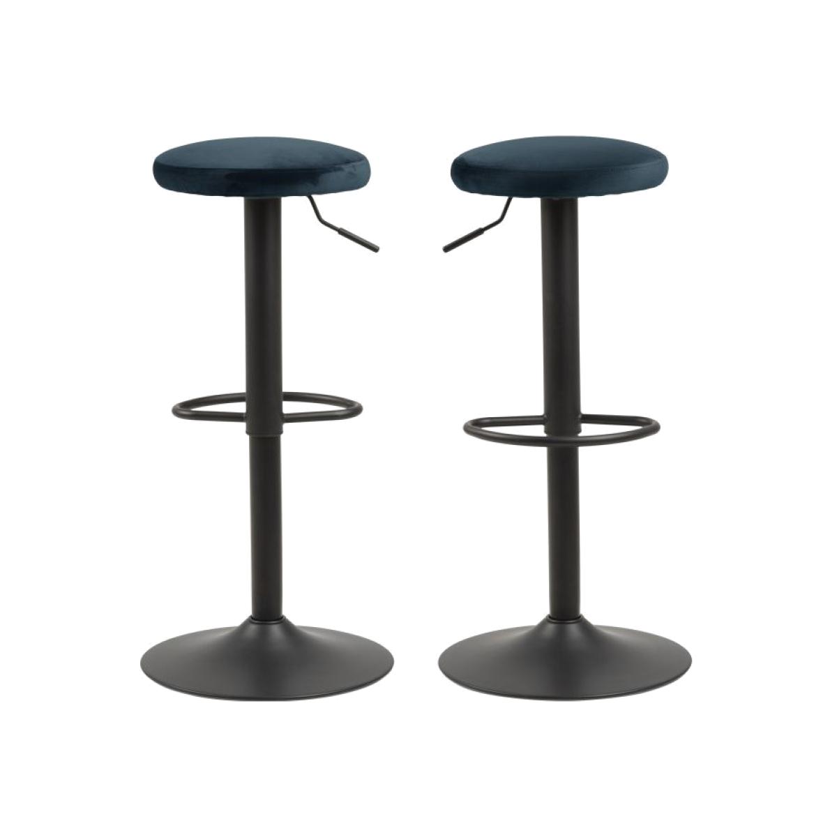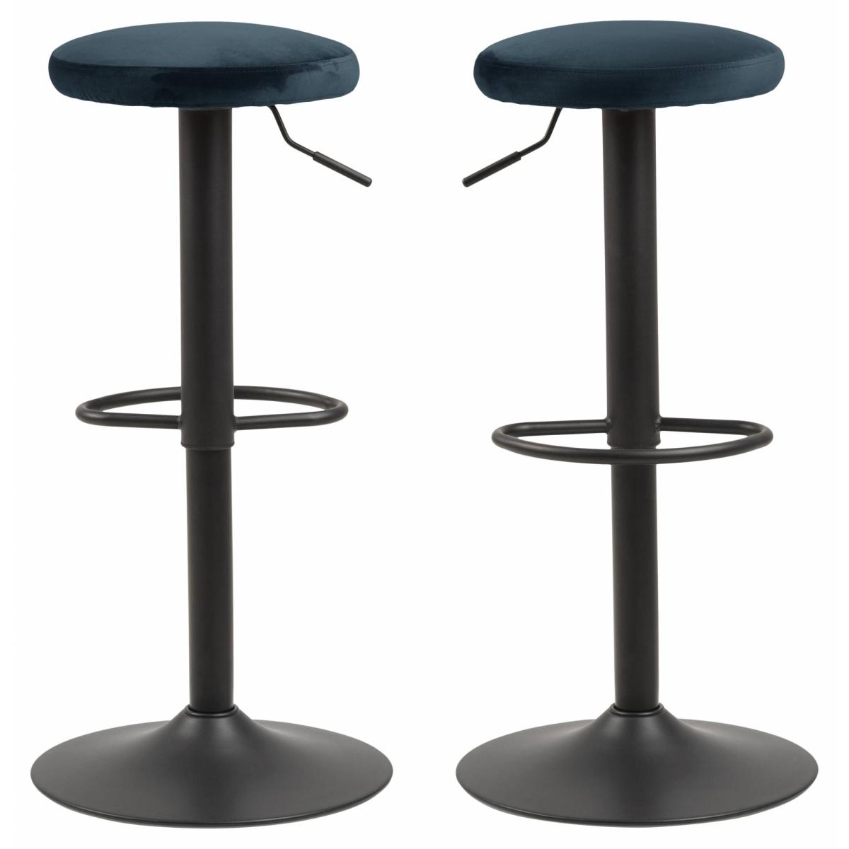 The beautiful and stylish Navy blue velvet seat of the Finch bar stool is the perfect edition to your kitchen, Black powder coated trumpet base offers a perfect, classy style that's easy to clean. Gas lift. Dimensions: 40cm (W) x 40cm (D) x 80cm (H) Self assembly required.