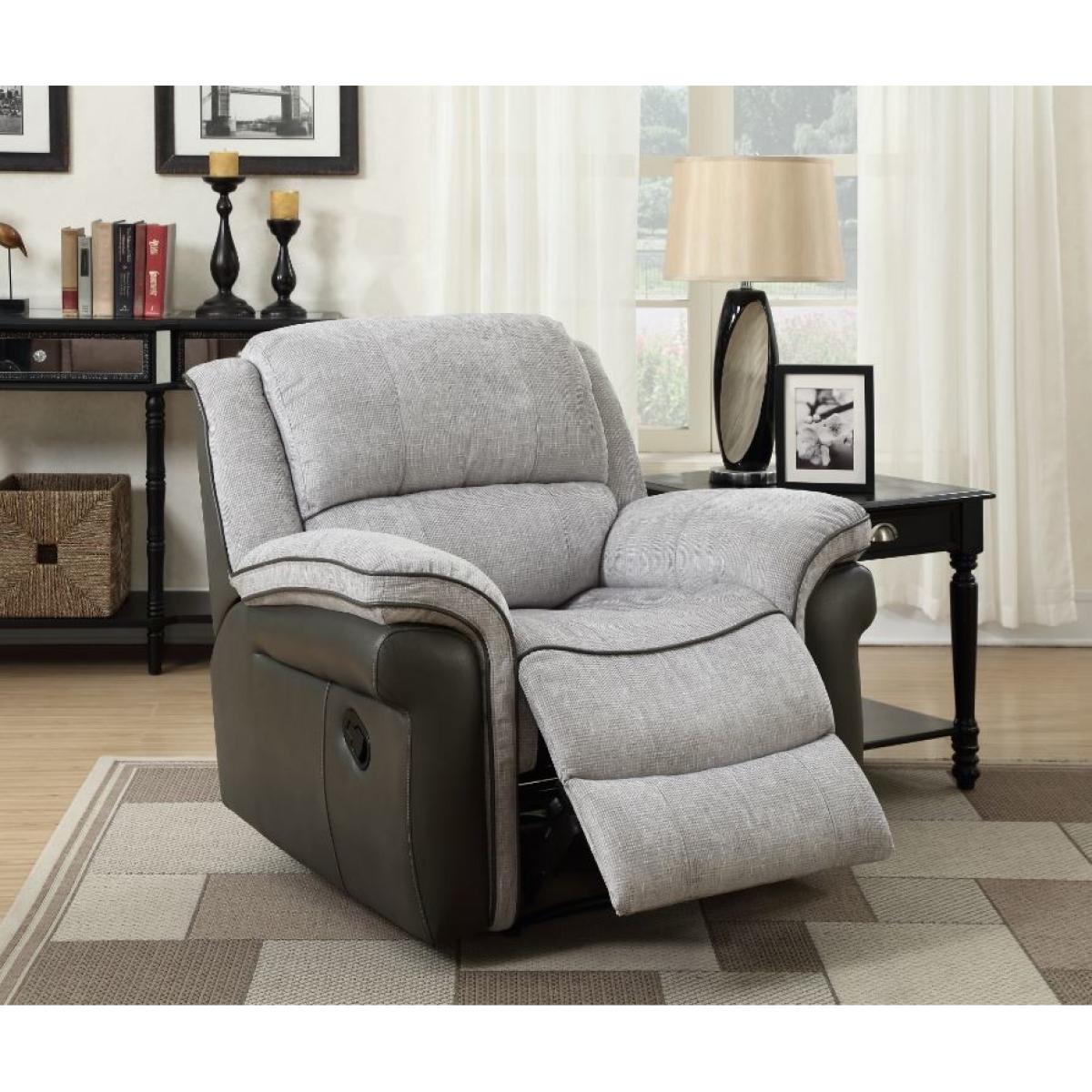 This armchair is a perfect fusion of leather air and fabric. It has a strong, enduring frame that sets it up for a lifetime of use, and a beautiful, striking design that will add to the existing décor in your living room, bedroom or study. This chair is a stylish and comfortable addition to your home. A cosy and comfortable armchair for your living room, bedroom and study. A compact and small chair that provides ultimate comfort without taking up too much room itself. Perfect balance between leather air and fabric upholstery, giving the chair a clean, elegant and eye-catching look. Full reclining option for greater comfort and relaxation. Striking grey upholstery that adds a splash of charm to the room. Generously padded cushions for maximum comfort. High rise back for better neck and back support. Also comes as a collection with a matching 2 seater and 3 seater sofa. Also available with mink and taupe fabric upholstery.