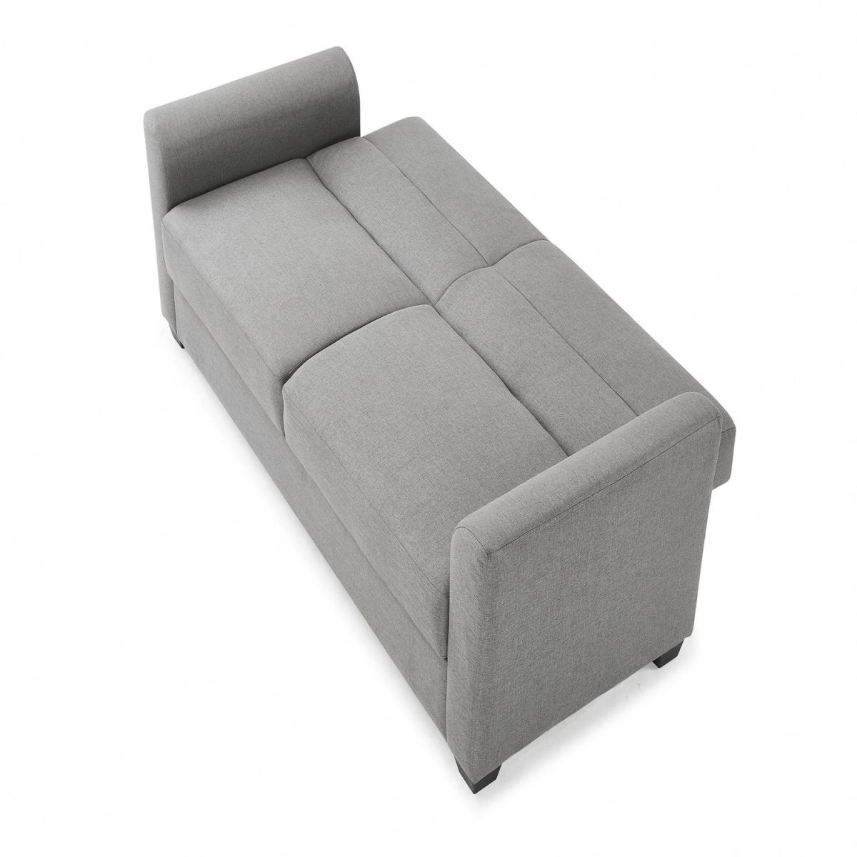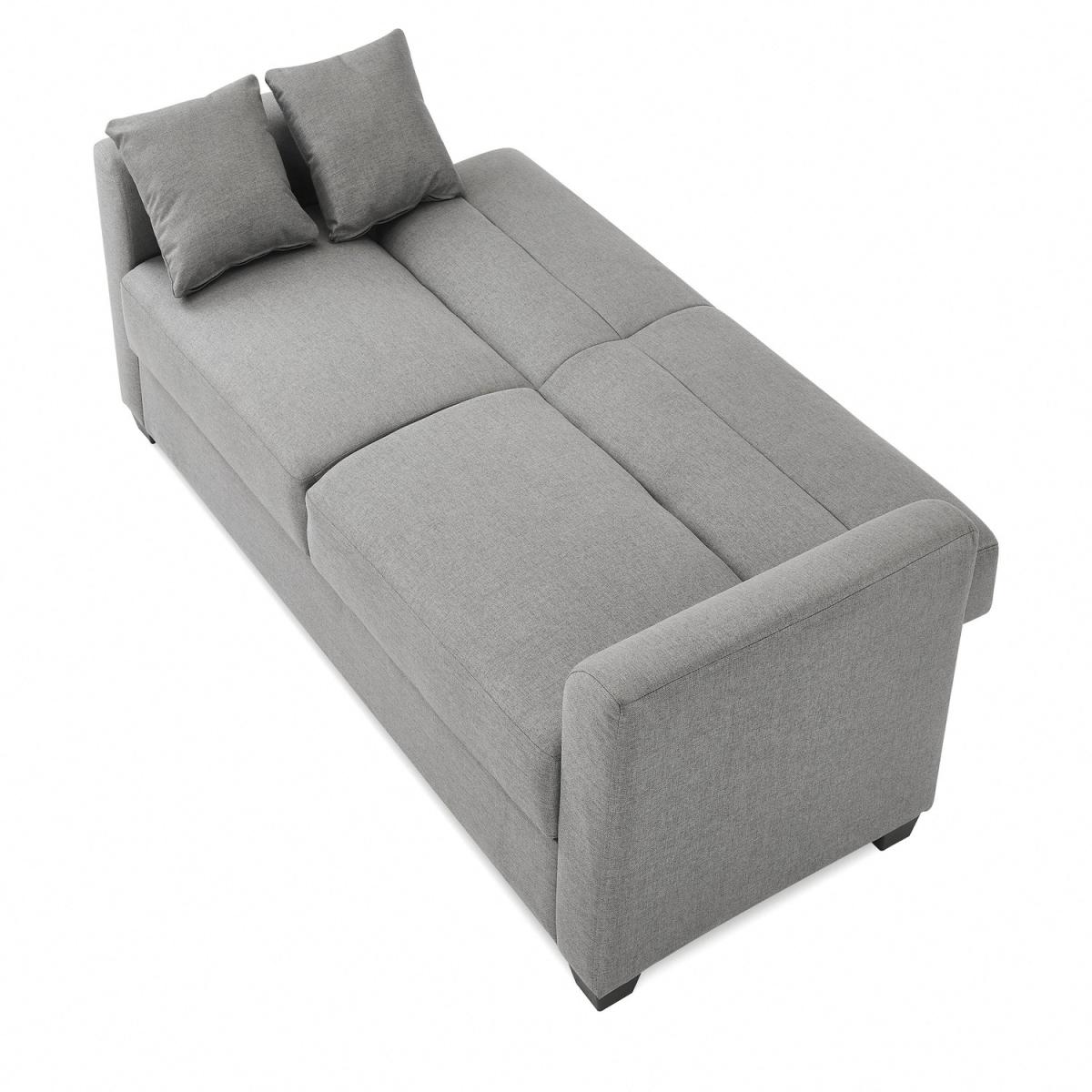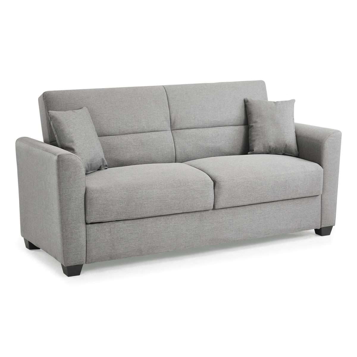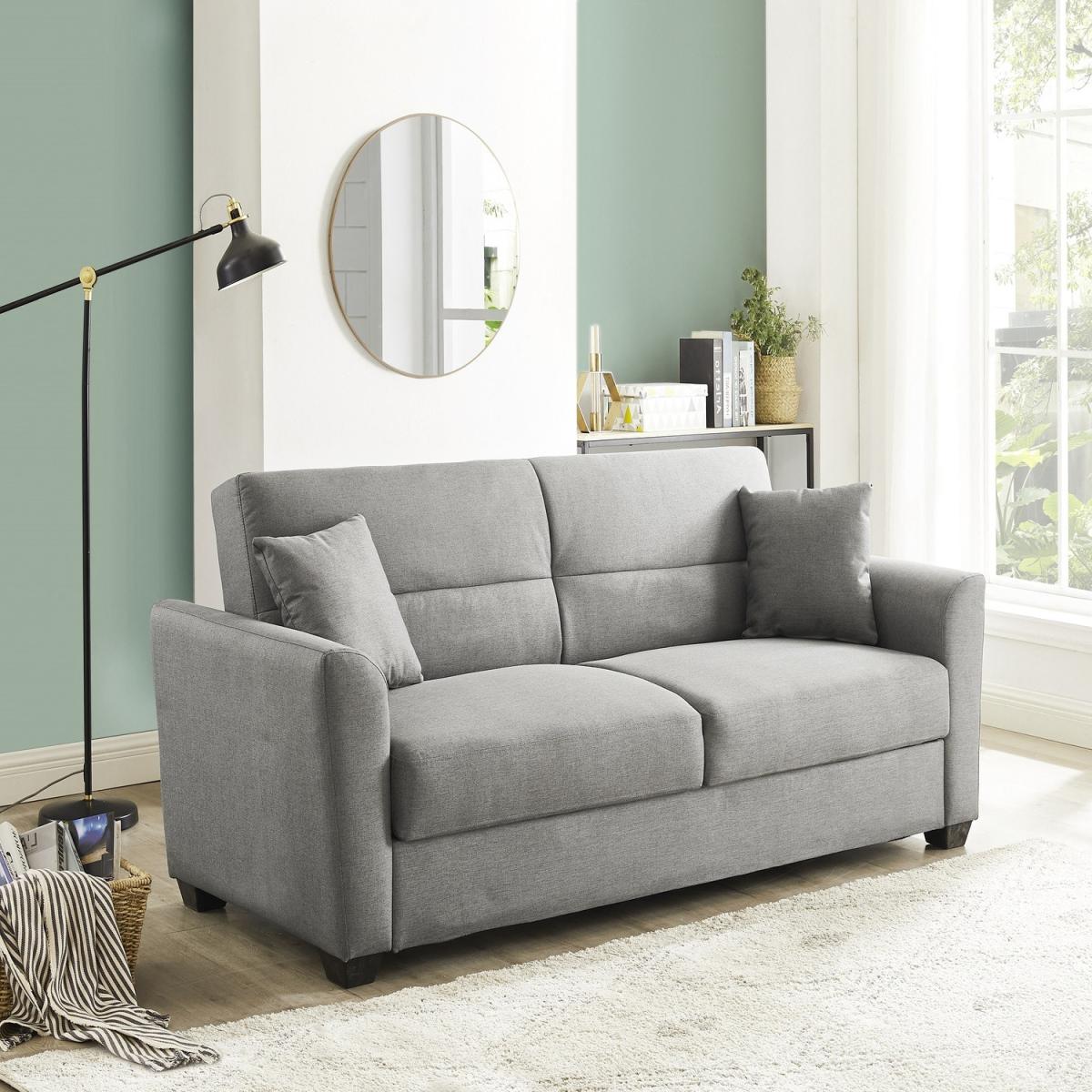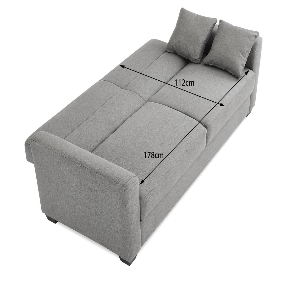 Introducing FINDLAY, a 3 seater sofa bed in versatile Grey Woven Fabric. FINDLAY comes with generously padded cushions, which are foam filled to provide extra comfort and has a under seat storage to store pillows and bedding. Convertible design - this sofa bed has a simple clic-clac mechanism that allows it to swiftly and simply transform from a sofa to a recliner to a bed, making it ideal for overnight guests. This sofa bed cannot be freely positioned in your room. The back of this sofa bed is upholstered in a black woven fabric that does not match the colour of the sofa bed fabric. Due to differences in lighting and screen resolution on laptop, desktop, and mobile devices, some fabrics may appear somewhat different in person. To get the most out of your sofa bed we recommend gently cleaning with the upholstery attachment of your vacuum cleaner or using a soft hand brush once per week. You might need to screw the legs to the underside of some of our sofa beds since they don't all have pre-drilled holes. All of our sofa beds come with an easy-to-follow assembly guide. Storage Area: 172cm x D76cm x H19cm