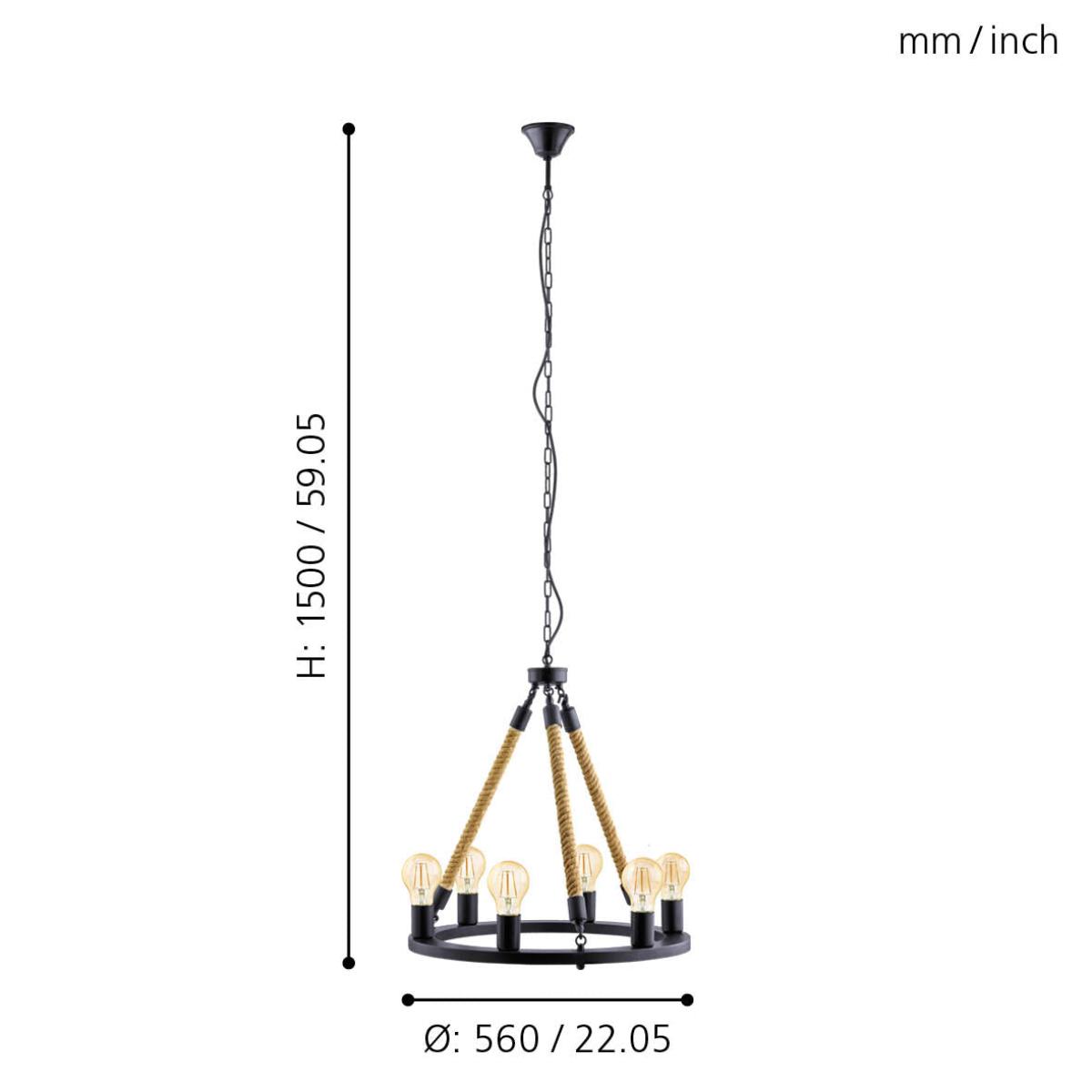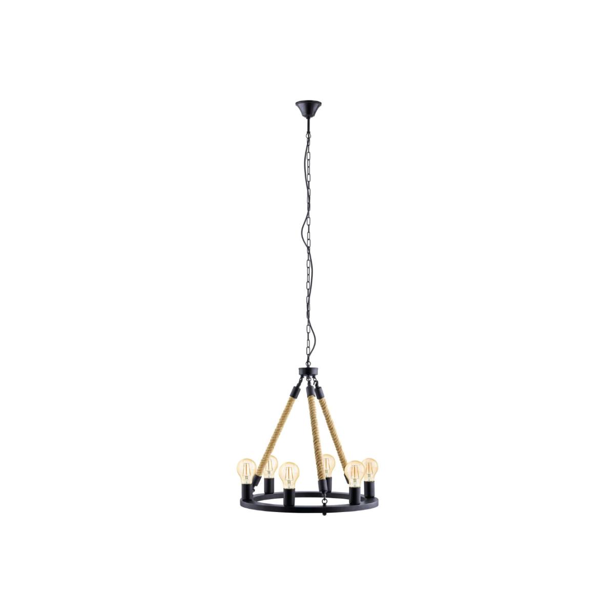Medieval style 6 light ceiling pendant boasting rope finish.  Update your space with the gorgeous vintage style circular Findlay chandelier. Complete with black steel frame, rope detailing and decorative chain. Perfect for both modern and traditional styled decors, finish the look with vintage filament bulbs.    Medieval style 6 light ceiling pendant boasting rope finish.  Update your space with the gorgeous vintage style circular Findlay chandelier. Complete with black steel frame, rope detailing and decorative chain. Perfect for both modern and traditional styled decors, finish the look with vintage filament bulbs.