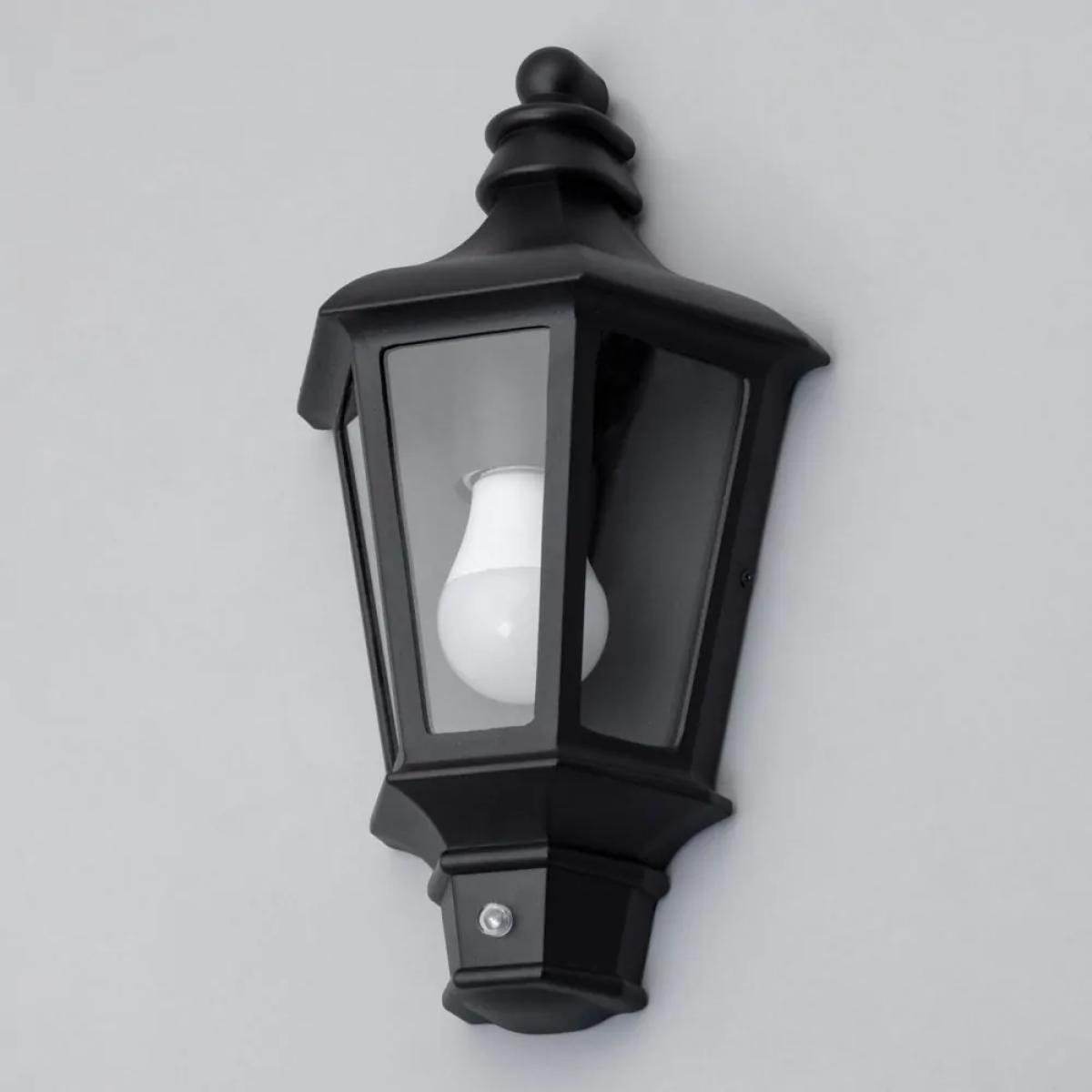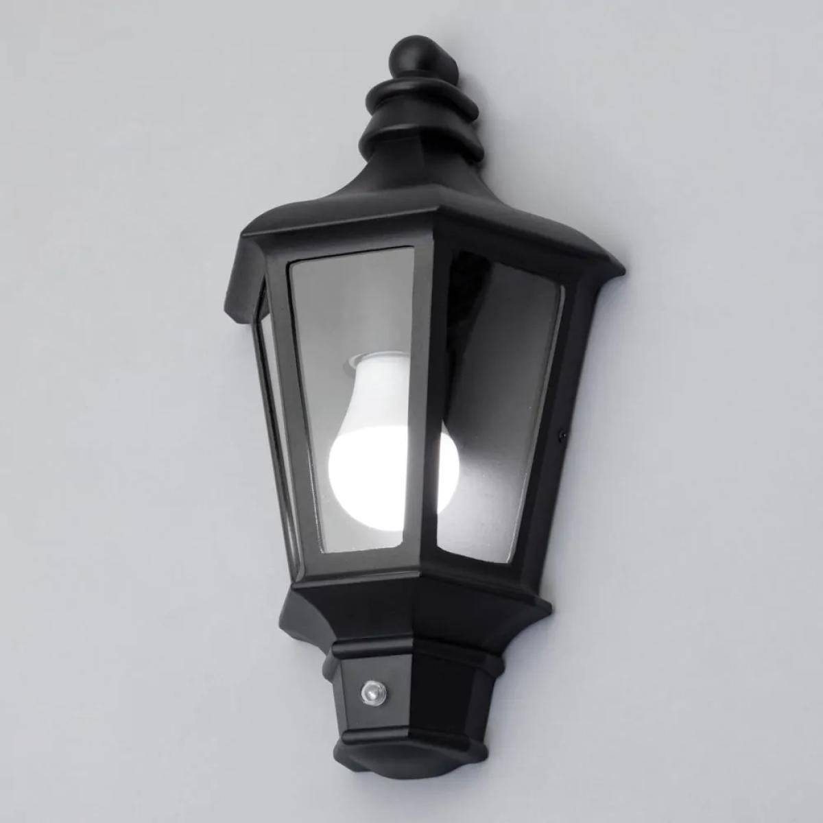 Classically designed lighting with a sleek urban twist, the Findlay Outdoor Half Lantern is perfect for stylishly and practically illuminating the exterior of your home. This wall light features a modern black finish and 3 beautiful, clear glass panes for a bright and clear spread of light. It also incorporates innovative photocell technology meaning that it can detect when the sun goes down and appropriately adjust its brightness to suit.