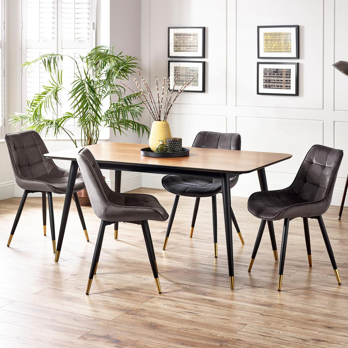 I love this set for its modern, clean lines which make it versatile across various interior styles, from contemporary to minimalist schemes. The grey tones of the table and chairs provide a neutral backdrop, allowing flexibility in accessorising with colourful or textured dining ware and soft furnishings. Practical styling tips include pairing it with light wood or marble accents to enhance its sleek look, while adding some statement lighting above can create a cosy yet sophisticated dining atmosphere. Additionally, the Hadid chairs are comfortable and stylish, making this set ideal for both everyday family meals and entertaining guests.