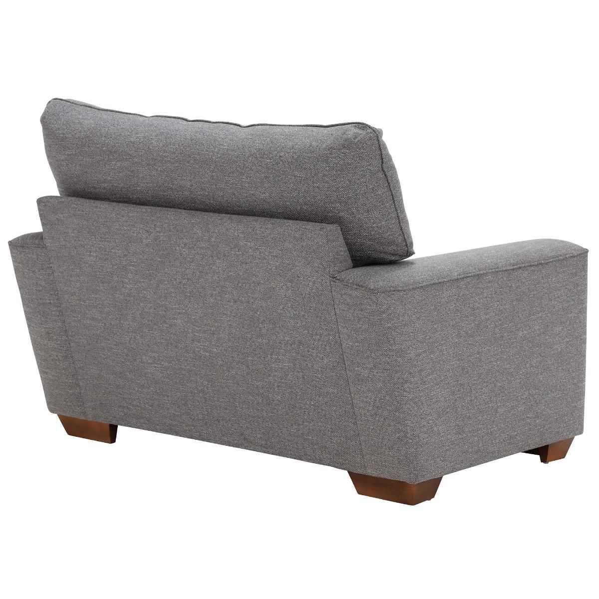 Design. Add a stylish accent to your sofa with the Findlay Snuggle Chair. Made in Britain, this chair combines contemporary style with generous proportions. Its deep seat cushions and curved arms provide laid-back comfort, while solid wood feet in a choice of colours enhance its eye-catching and cool design. The Findlay Large Sofa is finished in a luxurious fabric with solid wood feet in a choice of finishes.