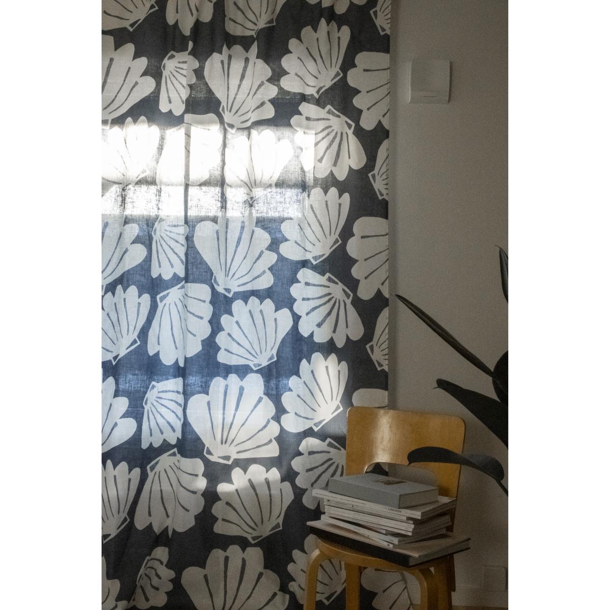 Shell curtain 145x250 from Swedish Fine Little Day is made of linen with a motif of shells designed by the artist Emilia Ilke. The Snäcka curtain is part of the Sea Sea Sea collection that celebrates the sea and its hidden treasures. The curtains have a transparent multiband at the top that allows you to hang the curtain on a pole, rail or with hooks.