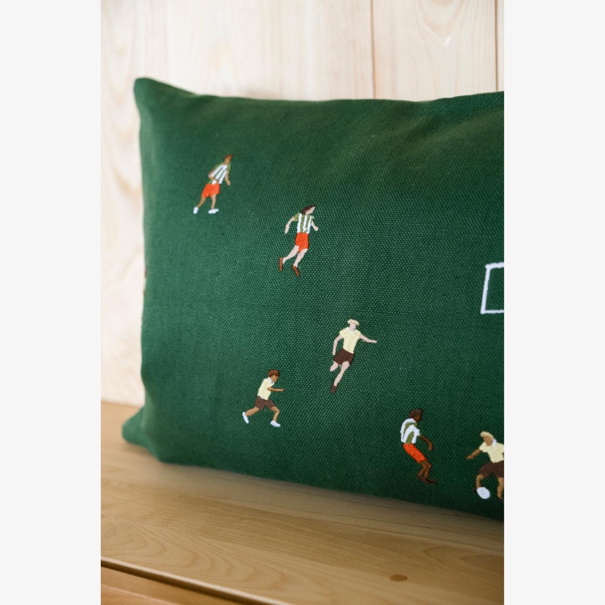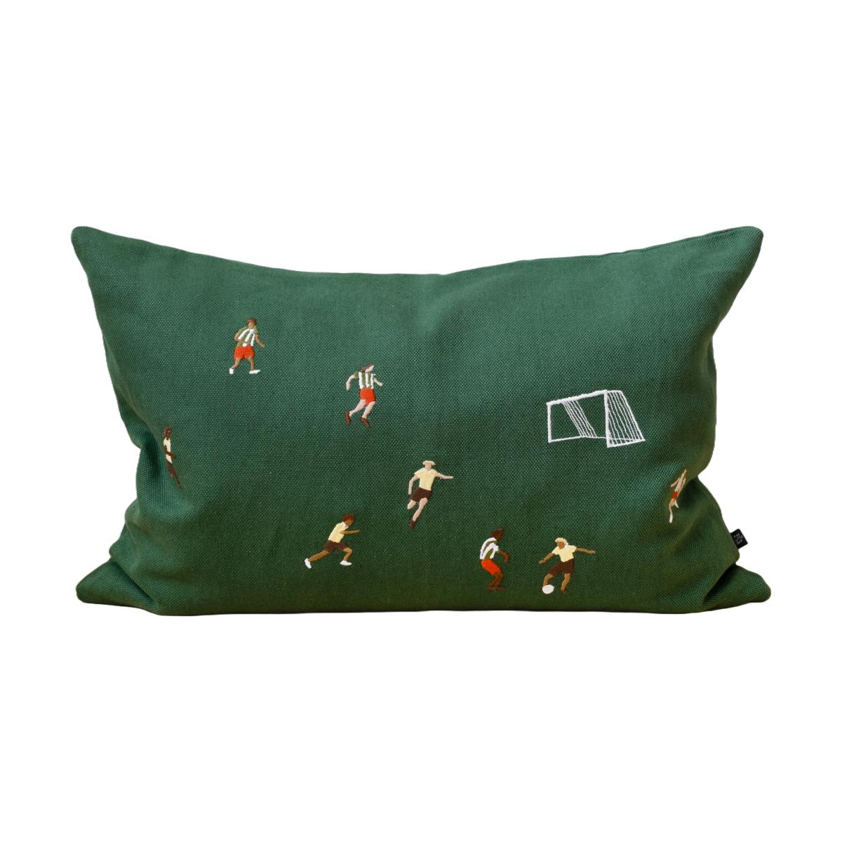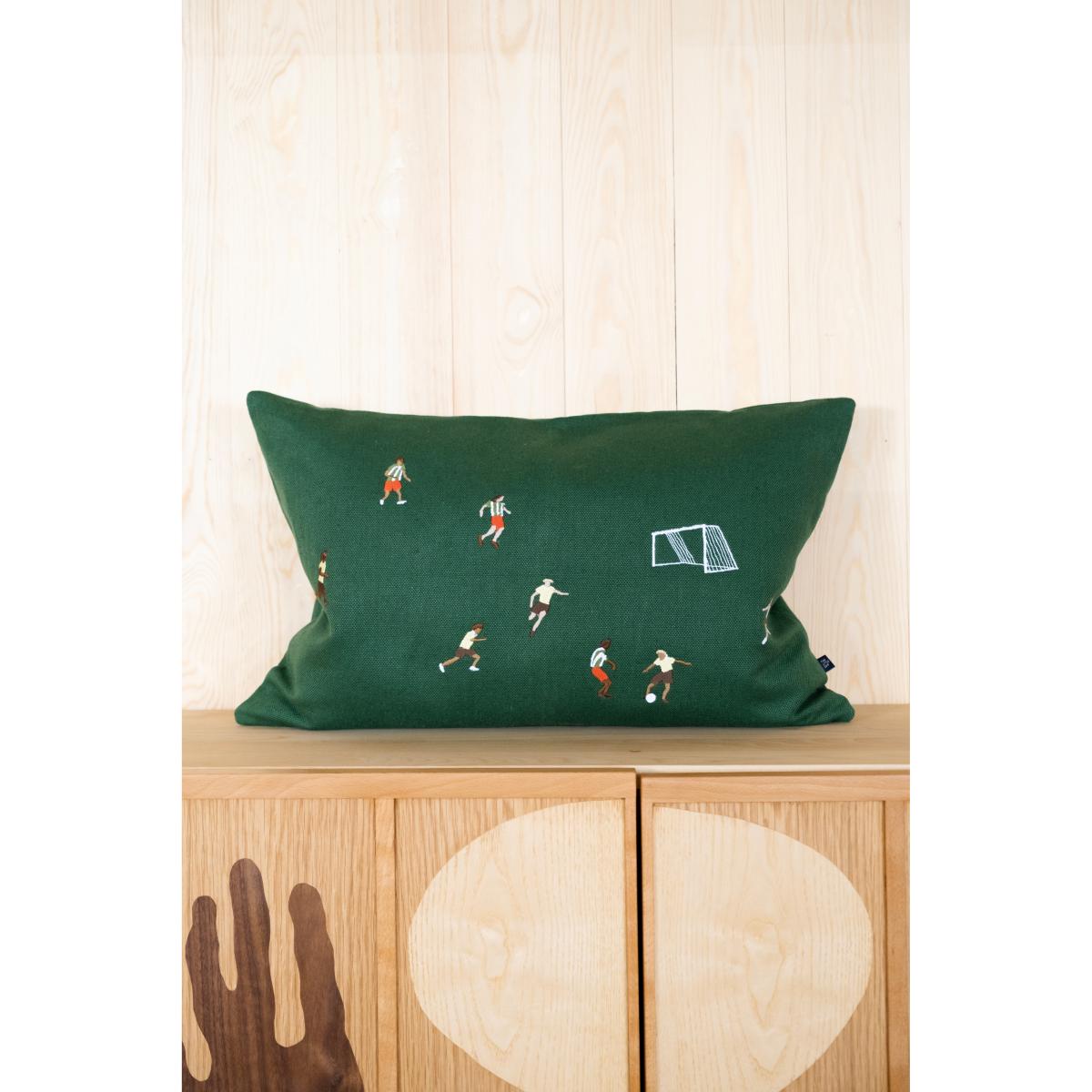 Soccer football pillowcase 58x38 cm from Swedish Fine Little Day is made of a mixture of linen and cotton and has a charming and playful image of embroidered football players designed by Elisabeth Dunker. This pillow case is a lovely eye-catching moment in the sofa group or on a made bed. Combine this Soccer football pillowcase with other pillows in different patterns and colours for an expressive and personal feel in the room.